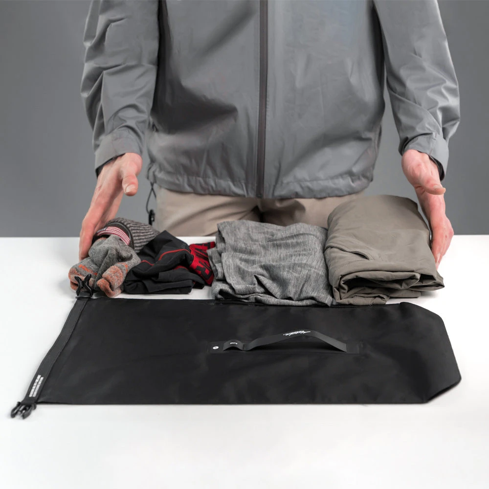 Der Flatpak Dry Bag 8L von Matador ist eine praktische Tasche und die perfekte Wahl für alle Outdoor-Aktivitäten, bei denen sie Ihre Sachen zuverlässig trocken hält. Besonders beim Wandern, Radfahren, auf Reisen und bei alpinen Skitouren werden Sie die Tasche zu schätzen wissen. Das Material besteht aus hochbelastbarem 70D-Nylon, dem dank der IPX 7 -Zertifizierung weder Wasser, Schnee noch Feuchtigkeit Angst machen. Darüber hinaus wird es durch eine Ripstop -Behandlung ergänzt, die die Reißfestigkeit erhöht. Für einen zuverlässigen Verschluss sorgt dann ein Rollverschluss mit Schnalle und Riemen aus robustem Hypalon™-Material.