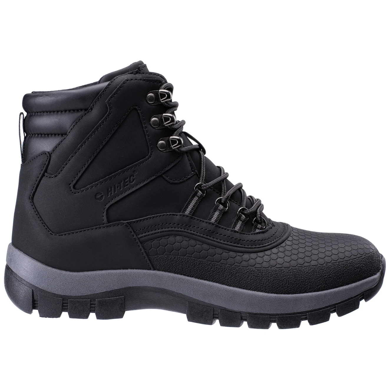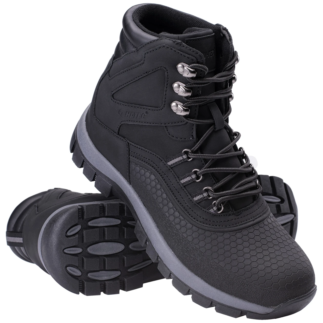 Die Blazi Mid Herren Winterstiefel der Marke Hi-Tec sind eine ideale Wahl für winterliche Abenteuer in den Bergen und den Alltag. Diese Stiefel sind höher, sodass Sie selbst ein frischer Schneefall nicht überrascht. Das wasserdichte Obermaterial und die rutschfeste Sohle garantieren Komfort und Sicherheit auf verschneiten und rutschigen Oberflächen. Ergonomisches Design und hochwertige Materialien sorgen für lange Lebensdauer und hohen Tragekomfort. Zum leichteren Anziehen verfügt der Schuh über eine Zwei-Zonen-Schnürung .