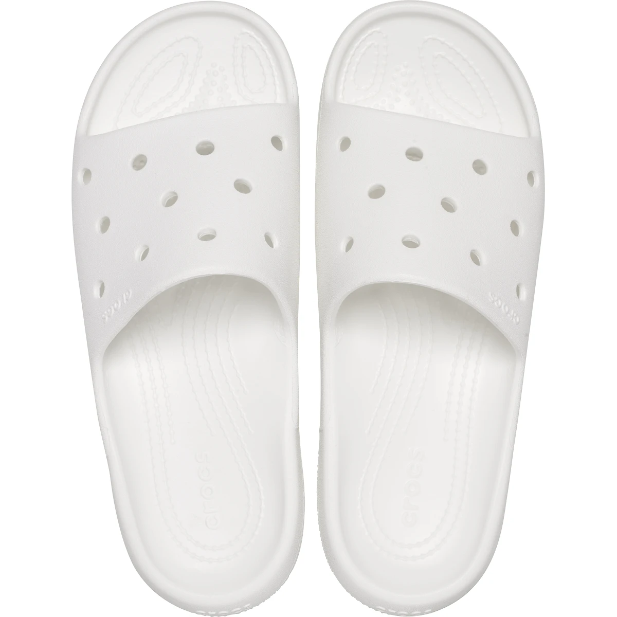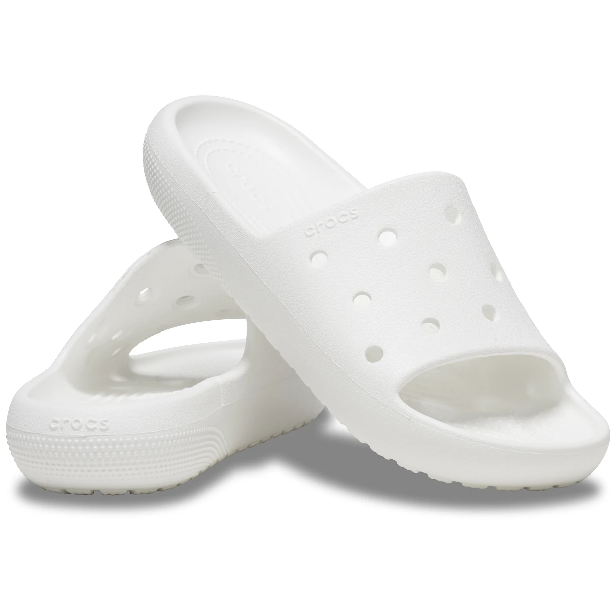 Die Hausschuhe Classic Slide v2 von Crocs sind einfach, vielseitig und Sie werden sie zu schätzen wissen, wenn Sie den ganzen Tag faulenzen oder durch die Stadt spazieren.