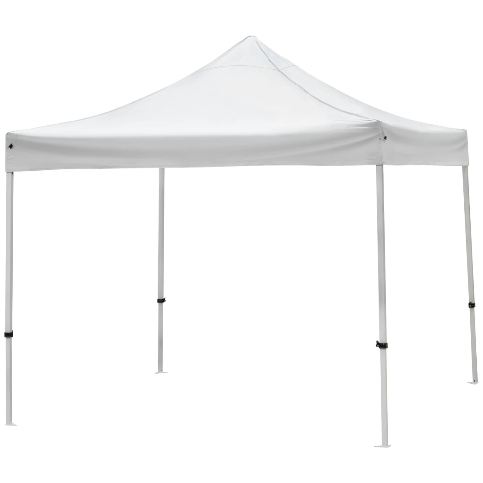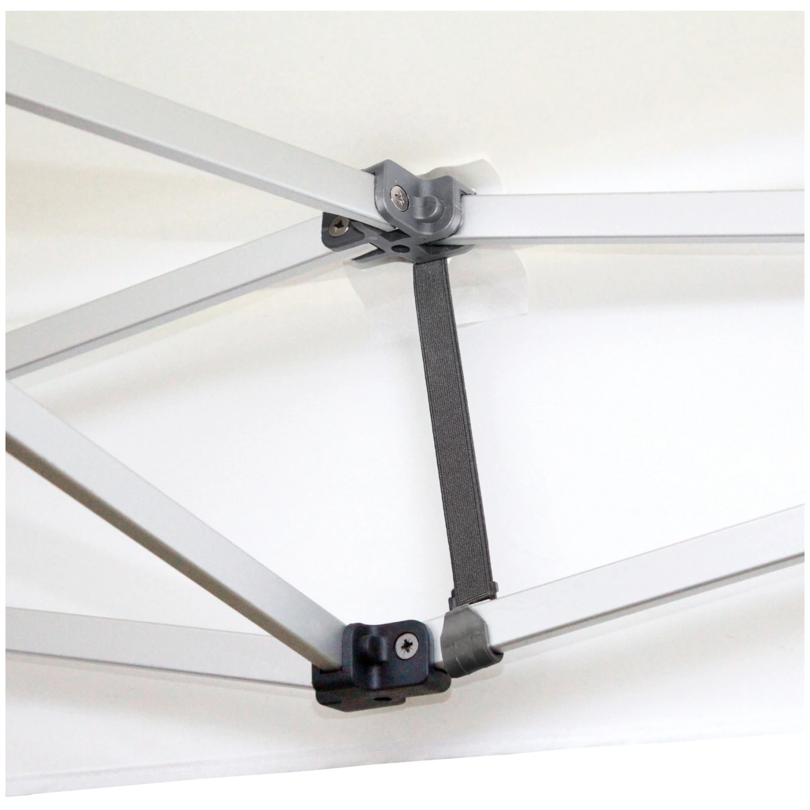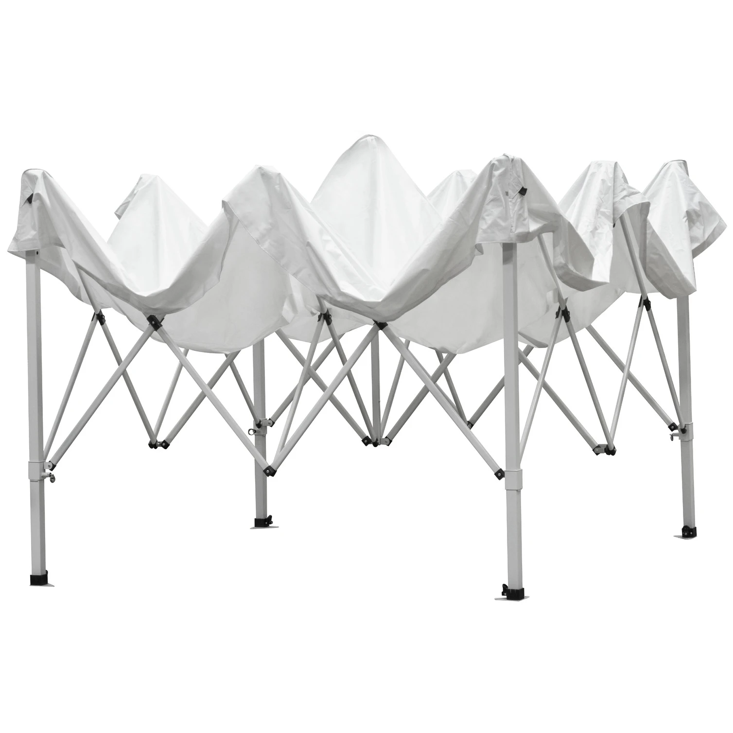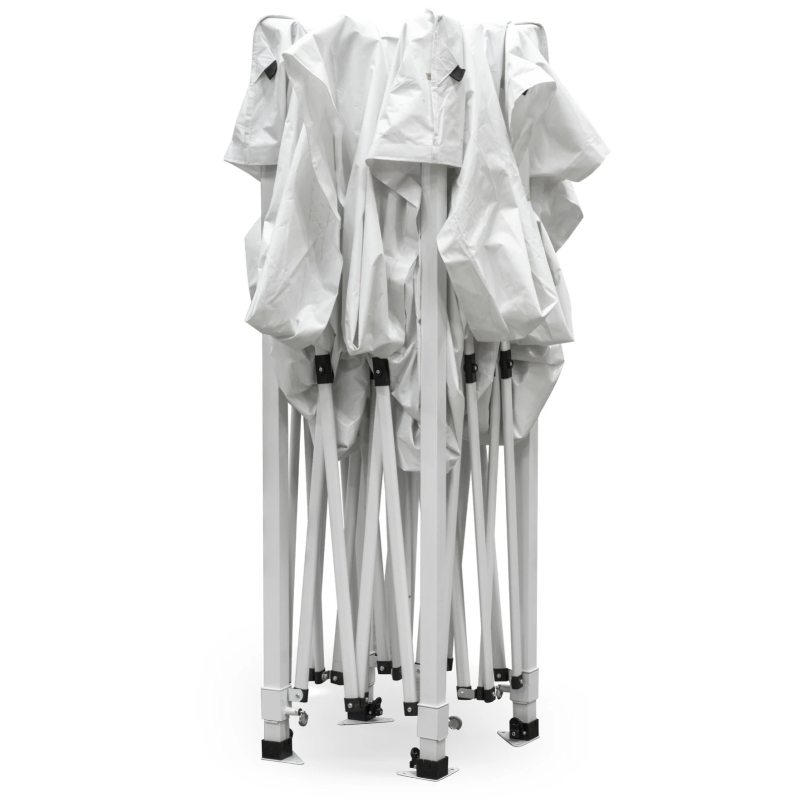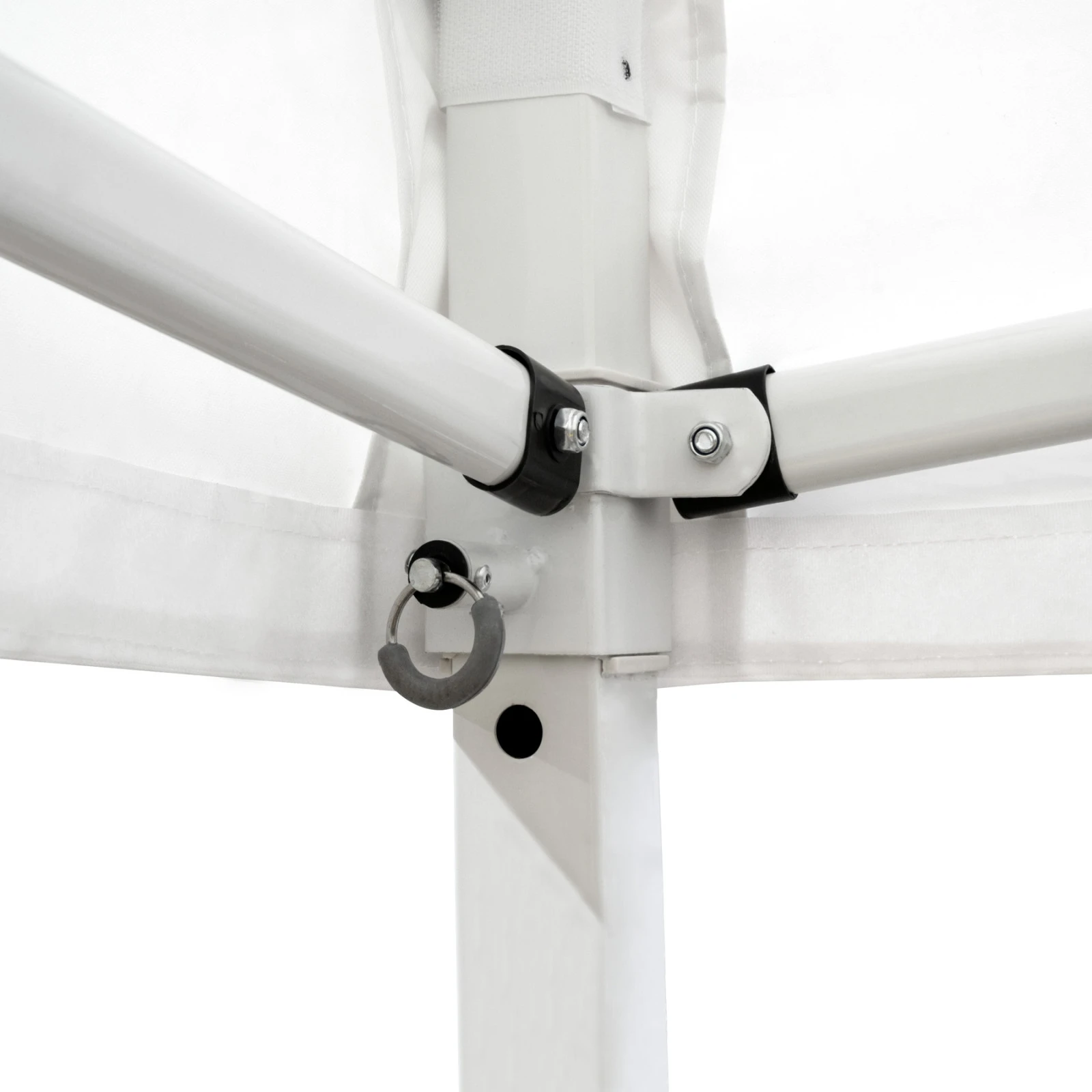 Stabiles Gestell aus pulverbeschichtetem Stahl mit verstellbaren Beinen (40 × 40 mm) sorgt für hohe Haltbarkeit und Festigkeit. Das Dach besteht aus 100 % Polyester mit wasserdichter Beschichtung und verschweißten Nähten und bietet so zuverlässigen Schutz vor Regen.