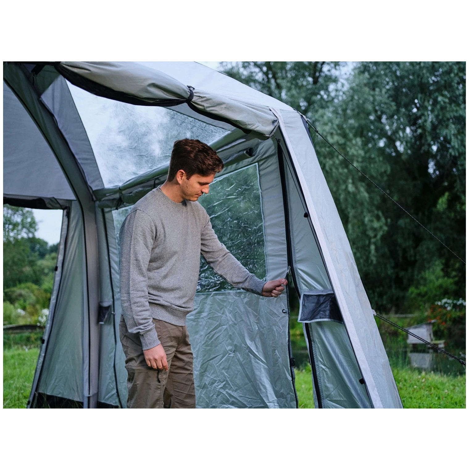 Im Lieferumfang sind außerdem Sonnenschutzrollos und Türstangen enthalten, mit denen Sie einen geschlosseneren Raum für mehr Privatsphäre oder Schutz vor Insekten, Wind und Regen schaffen können. Die spezielle Coleman® UV Guard -Behandlung verlängert die Lebensdauer des Stoffes und schützt ihn vor schädlicher Sonneneinstrahlung.