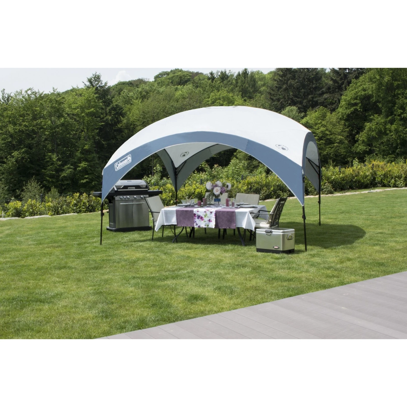 Coleman FastPitch Shelter XL ist ein leichter, einfach und schnell aufzubauender Party- unterstand. Es schützt vor Regenschauern (dank der Silberbeschichtung auf der Stoffunterseite) und vor 99 % der UV-Strahlung. Darüber hinaus reduziert es die Temperatur unter dem Unterstand um bis zu 2,5 °C.