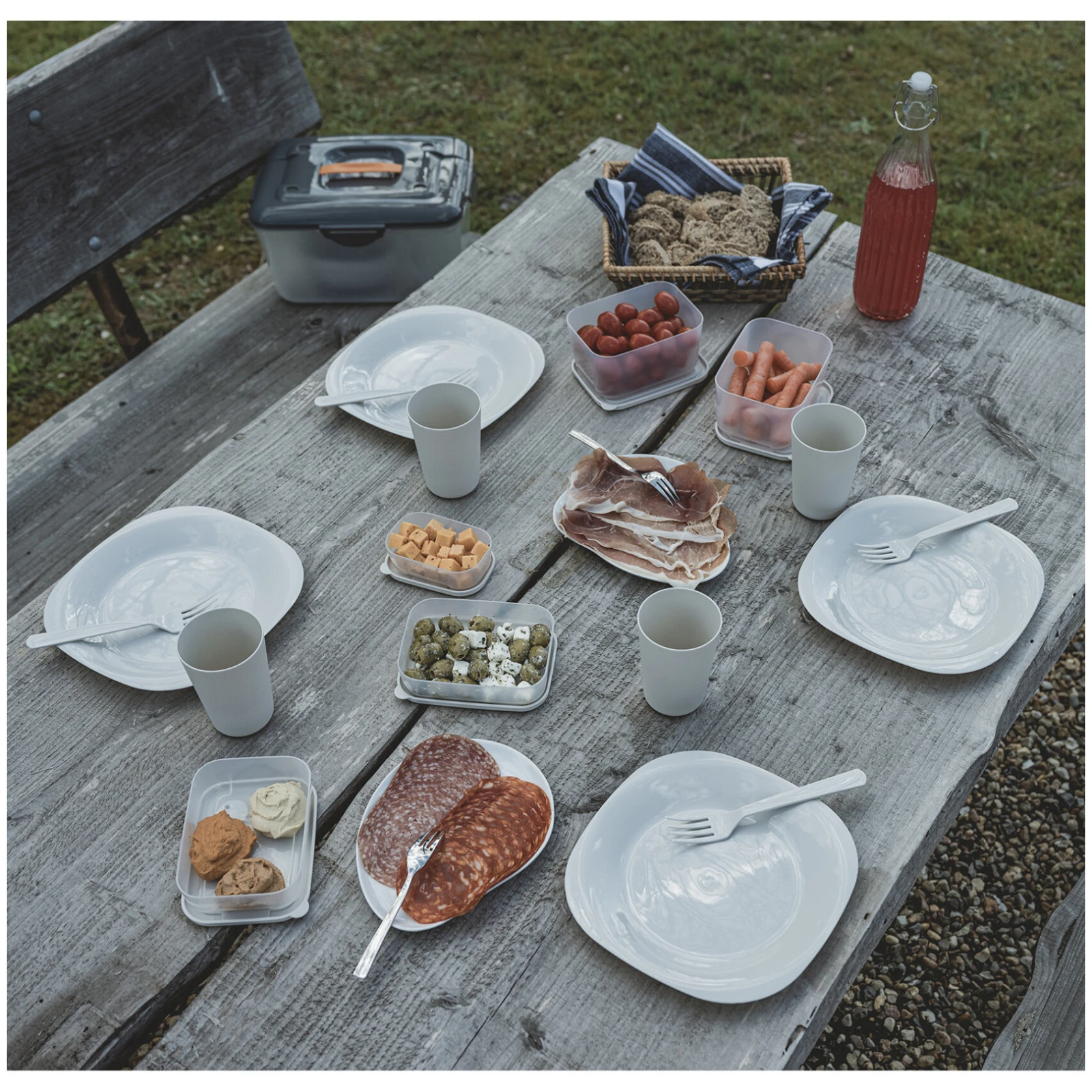 Ideal für Picknick, Grillen, Camping, am Strand oder im Garten. Das Geschirr kann in der Mikrowelle erhitzt und in der Spülmaschinegespült werden.