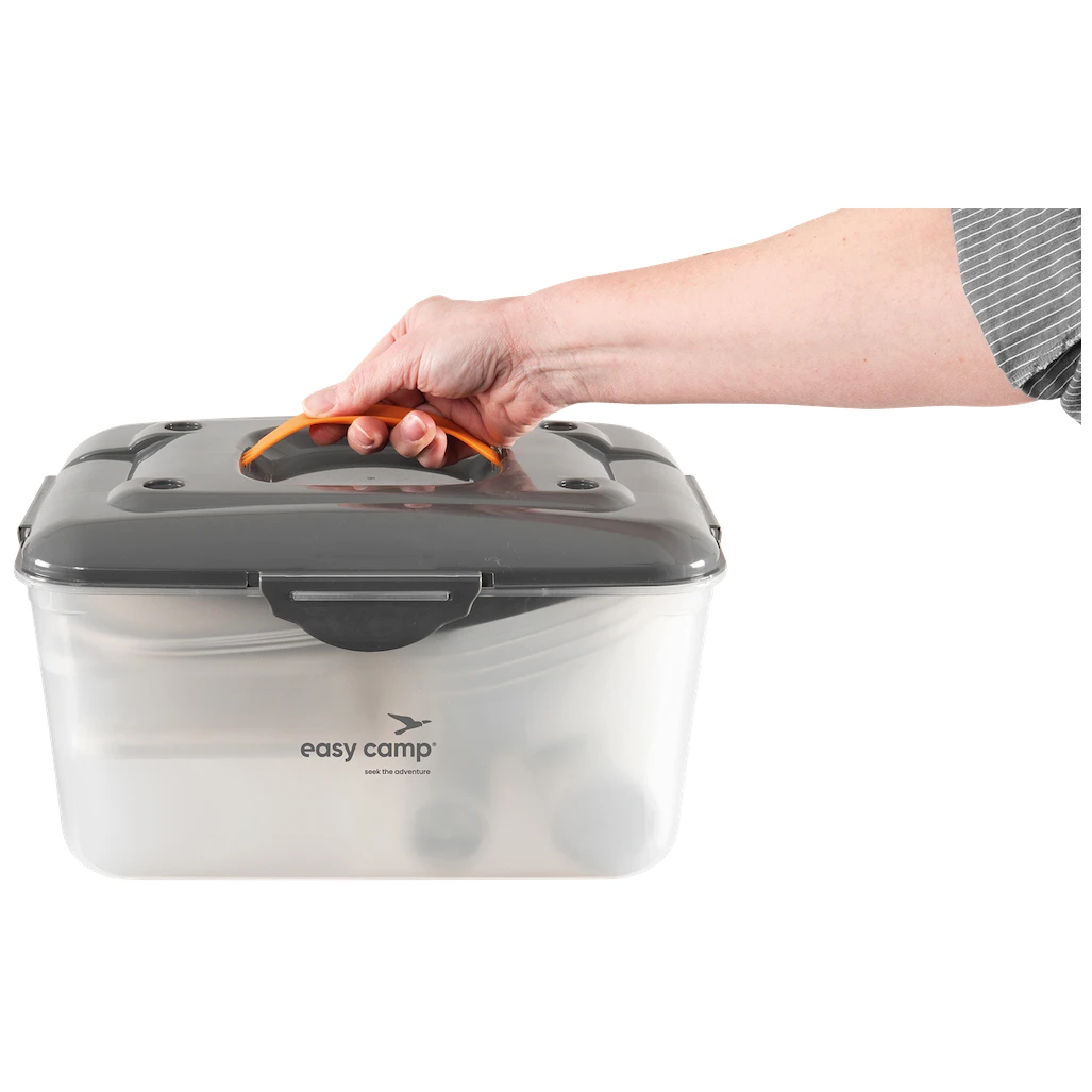Picnic Box M ist ein Kunststoff-Set aus Geschirr, Besteck und Foodboxen der Marke Easy Camp, welches in einer praktischen Kunststoffbox angeordnet ist. Das gesamte Set beinhaltet insgesamt 30 Teile an Geschirr und Besteck und ist ideal für ein Picknick oder den Urlaub für vier Personen.