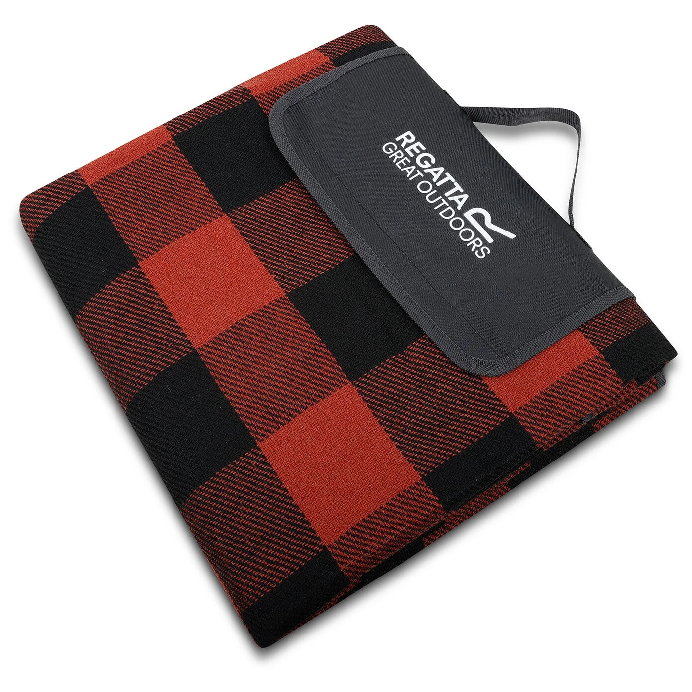 Die Matio Picnic Rug Picknickdecke aus strapazierfähigem PEVA-Gewebe und Polyester der Marke Regatta ist dank ihrer Maße von 150x135 cm groß genug für Picknicks und die mittlere Schicht aus weichem Schaumstoff sorgt für mehr Komfort. Zusammengeklappt lässt er sich dank integriertem Tragegriff bequem als Tasche tragen.