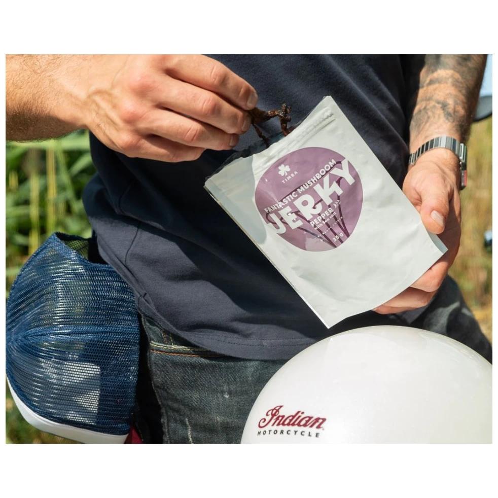 Mushroom Jerky - Pfeffer mit Meersalz ist Mushroom Jerky der Firma Timba, was die Qualität des Produktes beweist. Damit genießen Sie einen ungetrübten Geschmack.