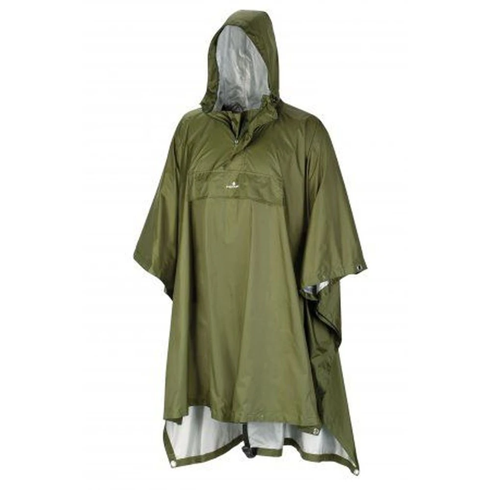 Der Todomodo RP L/XL Poncho des italienischen Herstellers Ferrino wird so manchen Outdoor-Enthusiasten begeistern. Dank der Herstellung aus robustem und langlebigem Polyester mit Ripstop-Beschichtung schützt es Sie zuverlässig vor schlechtem Wetter. Aber das ist noch nicht alles! Ergänzt wird der Poncho durch Knöpfe und Ösen, welche ihm eine multifunktionale Nutzung verleihen. Durch Ösen können zwei oder mehrere Ponchos miteinander verbunden werden, sodass eine Zeltplane entsteht. Darüber hinaus kann der Poncho auch als Schlafsacküberzug, Signalplane, Windschutz oder zur Warmwasserbereitung genutzt werden.