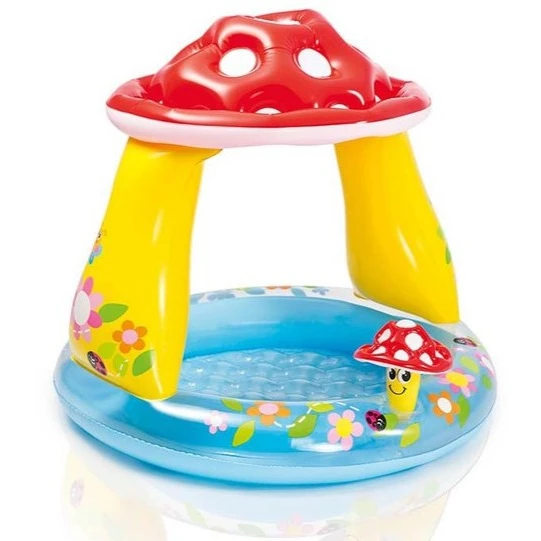 Wahrscheinlich planscht jedes kleine Kind gern im Wasser. Der aufblasbare Pool Intex Mushroom Baby Pool eignet sich perfekt für diesen Zweck. Der weiche, aufblasbare Boden gewährleistet Ihren Kindern sicheres und bequemes Spielen. Die Poolabdeckung in Form eines Fliegenpilzes spendet angenehmen Schatten und schützt Ihr Kind vor Sonneneinstrahlung. In der Seitenwand befindet sich ein aufblasbares Spielzeug, das leicht entfernt werden kann. Alle Produkte des Traditionsunternehmens Intex erfüllen strenge Sicherheitsstandards.