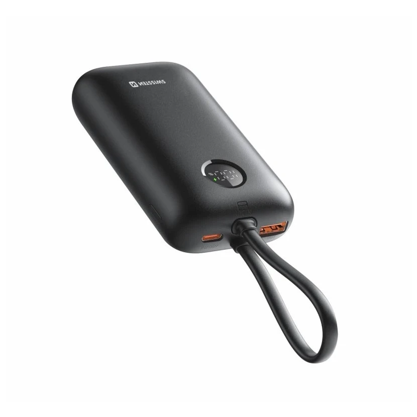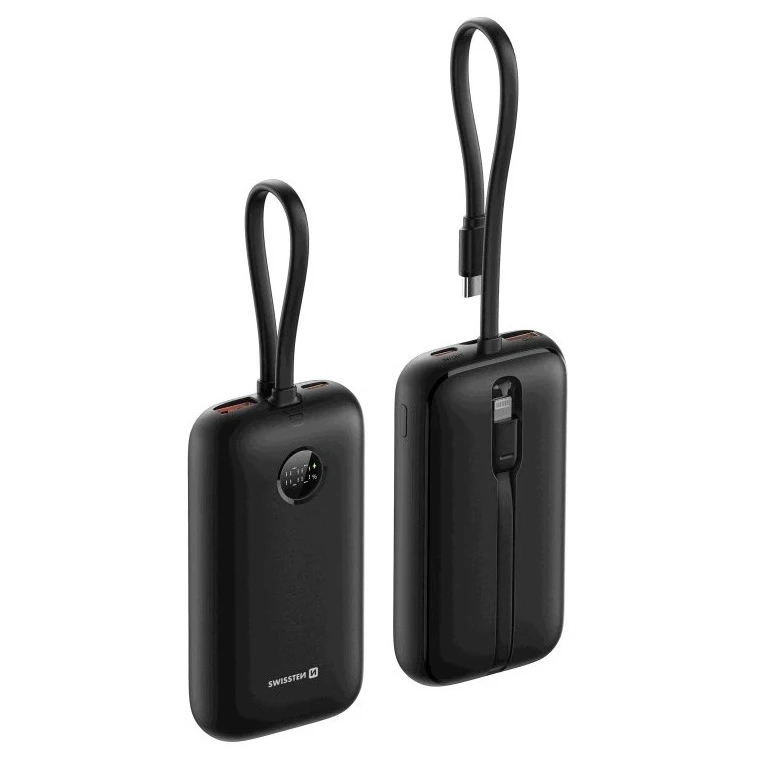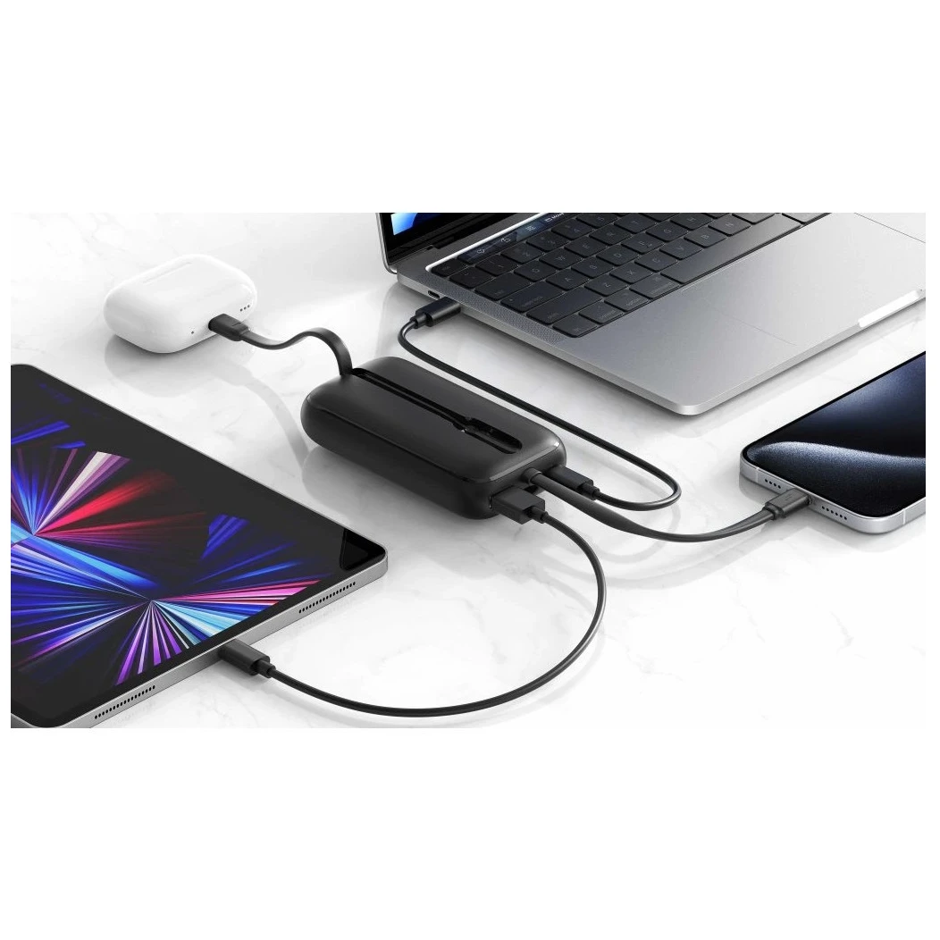 Eine kompakte Powerbank mit integrierten USB-C- und Lightning-Kabeln und einer Kapazität von 10.000 mAh ist für moderne Benutzer konzipiert, die mehrere Geräte gleichzeitig aufladen müssen. Es ist mit fortschrittlicher Schnellladetechnologie ausgestattet, mit der Sie über den USB-C-Anschluss und das integrierte USB-C-Kabel eine Leistung von bis zu 35 W erreichen können. Ideal zum schnellen Aufladen von Smartphones, Tablets und kleineren Laptops.