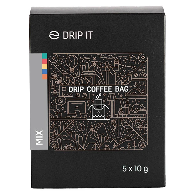 Das 5x 10g Probierpaket der Marke Drip It bietet 5 leckere Kaffeesorten in einer Packung aus 100% Arabica.