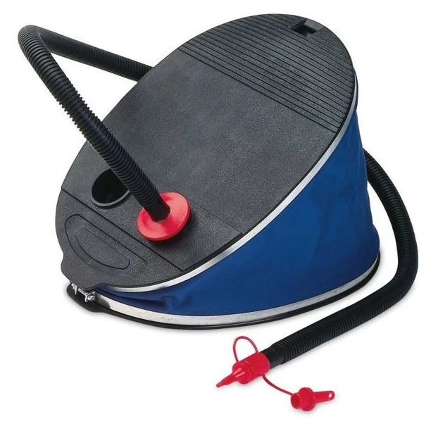 Die Riesenbalg-Fußpumpe von Intex ist eine leicht tragbare Pumpe zum Aufblasen von Liegen, Matratzen, Pools, Bällen und anderen Geräten. Die Pumpe ermöglicht das Aufpumpen und Entleeren über einen flexiblen Schlauch mit drei Aufsätzen , die für die meisten Ventile geeignet sind. Im Vergleich zum Modell Balgfußpumpe bietet diese Pumpe einen um 50 % größeren Luftstrom. Das Produkt hat die Tests des TÜV Rheinland bestanden.