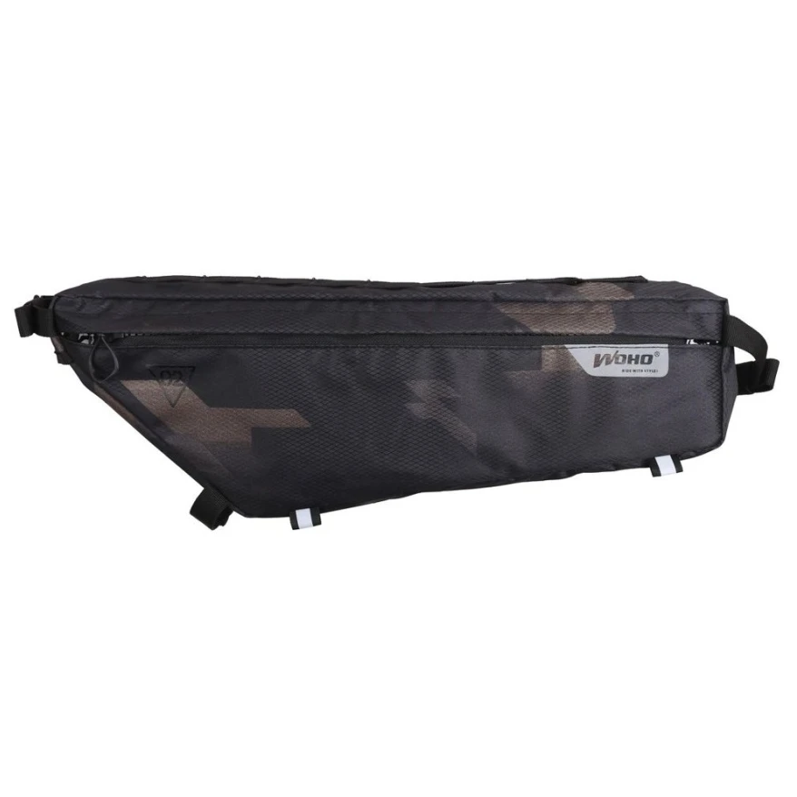Rahmentasche WOHO Xtouring Diamond CyberCam ist für Radfahrer und Bikepacker konzipiert. Xtouring-Rahmentaschen – in drei Größen erhältlich, passend für unterschiedliche Rahmengrößen und -formen. Sie sind aus den gleichen hochwertigen Materialien gefertigt, allerdings handelt es sich hier, anders als bei den Untersattelvarianten, nicht um eine wasserdichte Variante, der Stoff ist lediglich imprägniert, sodass er Wasser abweist. Verstellbare Befestigungsgurte für verschiedene Einstellungen und Paracord-Reißverschlüsse zum Herunterziehen ermöglichen einen einfachen Zugriff auf die Tasche. Auch während der Fahrt und mit Handschuhen ist ihre Bedienung leicht und einfach.