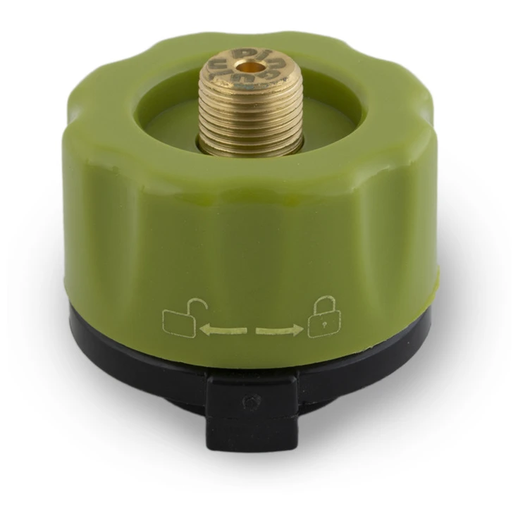 DerReduzieradapter 220 g der Marke Pinquin dient zum Anschluss eines Kochers mit Standardgewinde an eine sehr kompakte Bajonett- 220g Kartusche. Der Reduzierstück simuliert das Gewinde einer 220g Bajonettpatrone.