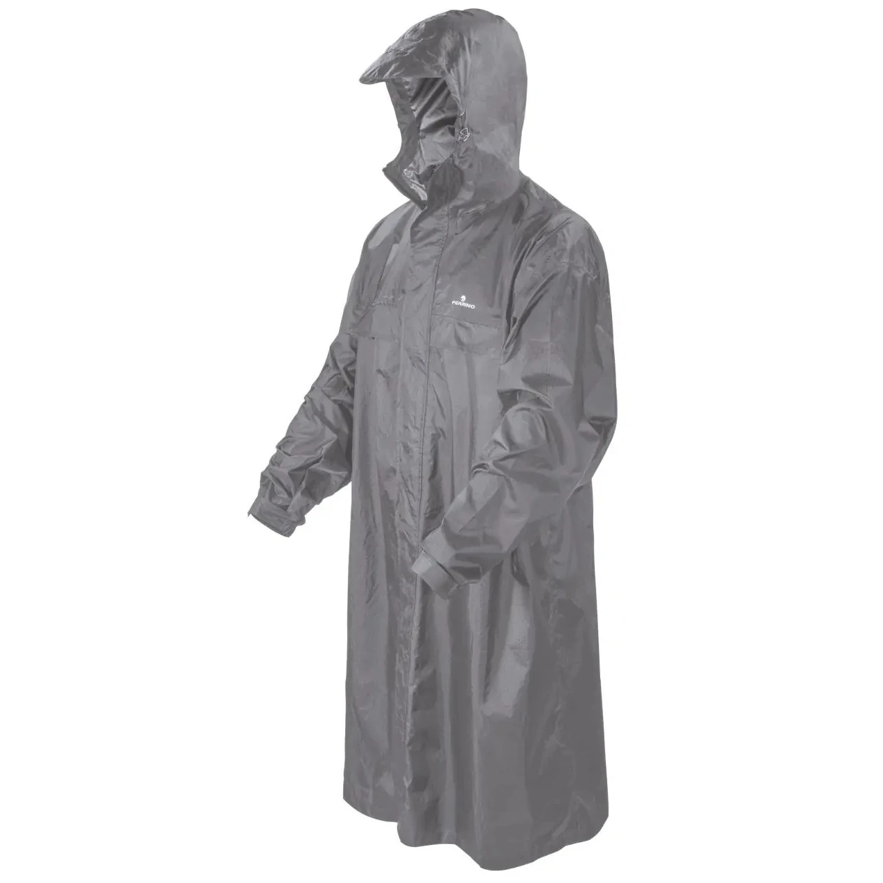 Handlicher Regenmantel aus wasserdichtem Nylon-Ripstop-Material mit Aluminiumbeschichtung. Der Regenmantel verfügt über eine Frontöffnung mit Klappe und Frontbelüftung.