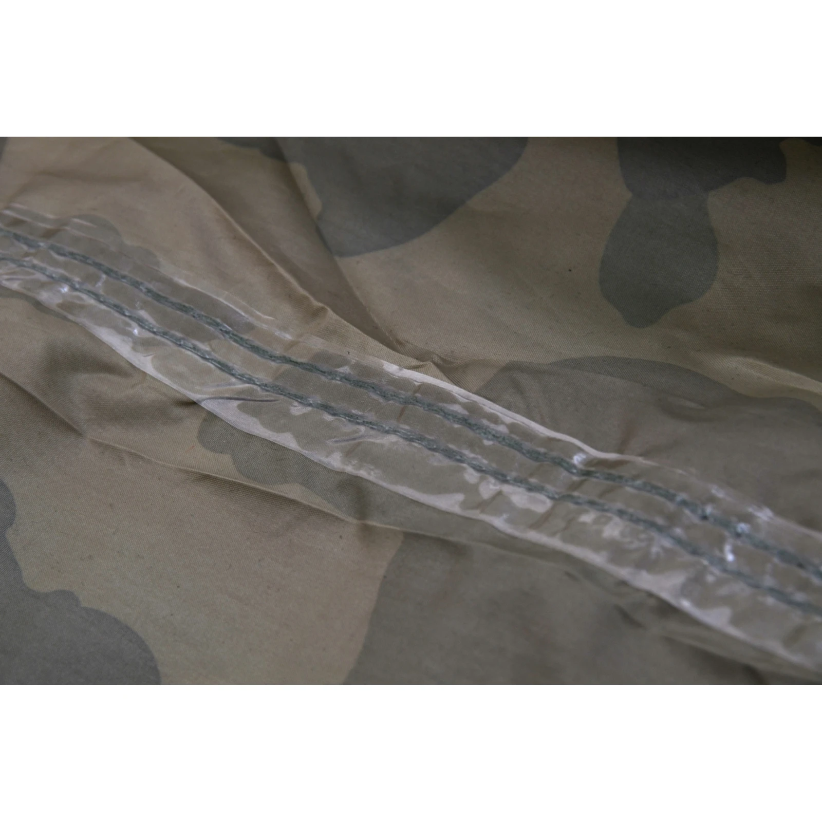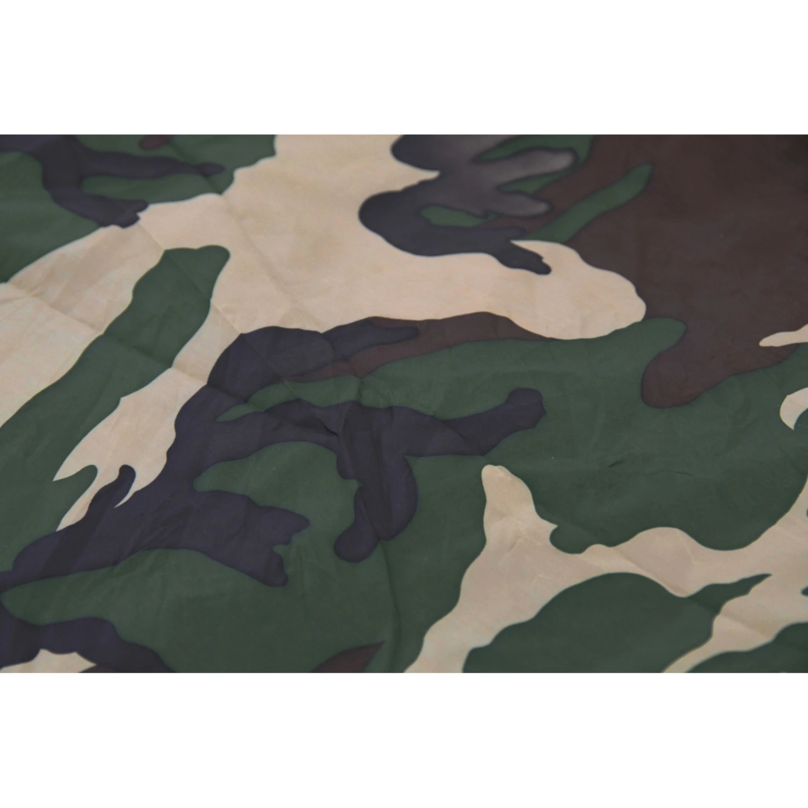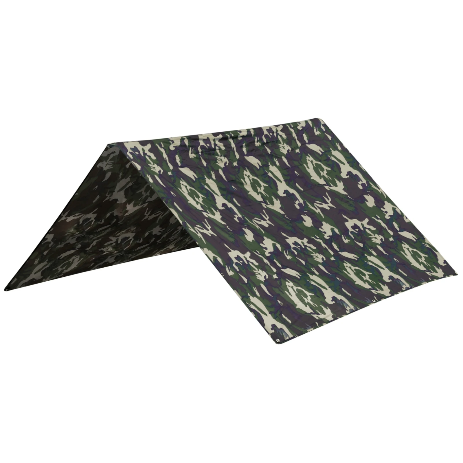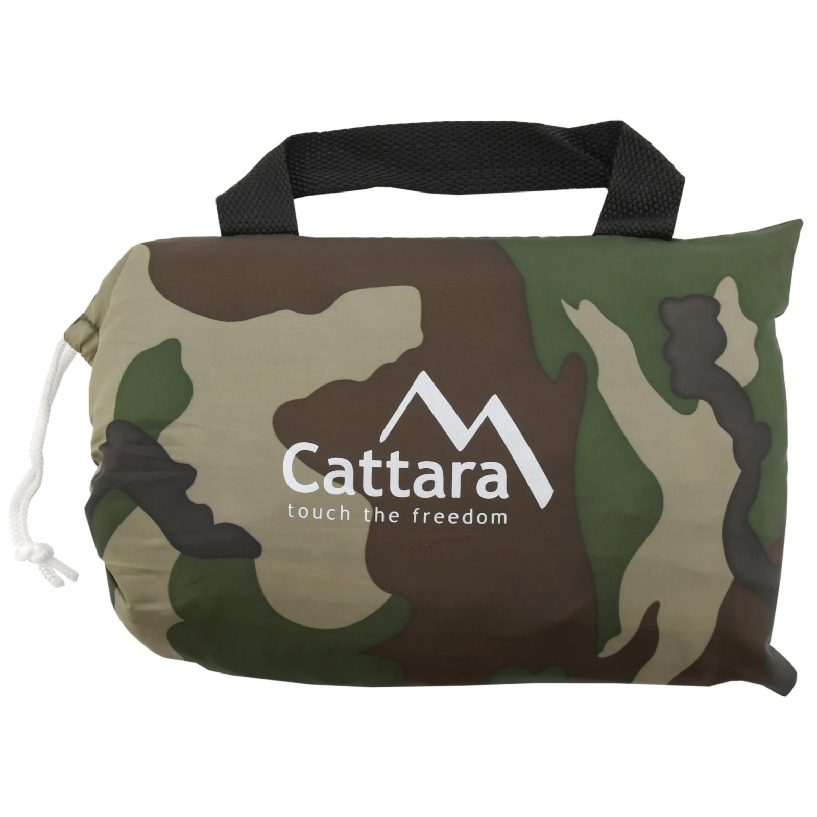 Leichtes Reisezelt Cattara Wasserdicht in Waldtarnung mit den Maßen 2x3 m. Das Zelt ist mit Ösen zum Befestigen und Lösen des Segels ausgestattet, so dass das Zelt als Unterstand oder Leeschutz (z. B. mit Wanderstöcken) genutzt werden kann. Das Material aus 100 % Polyester sorgt zusammen mit verschweißten Nähten für wasserdichte Eigenschaften. Das Material wurde mit einer Wassersäule von 2000 mm getestet.