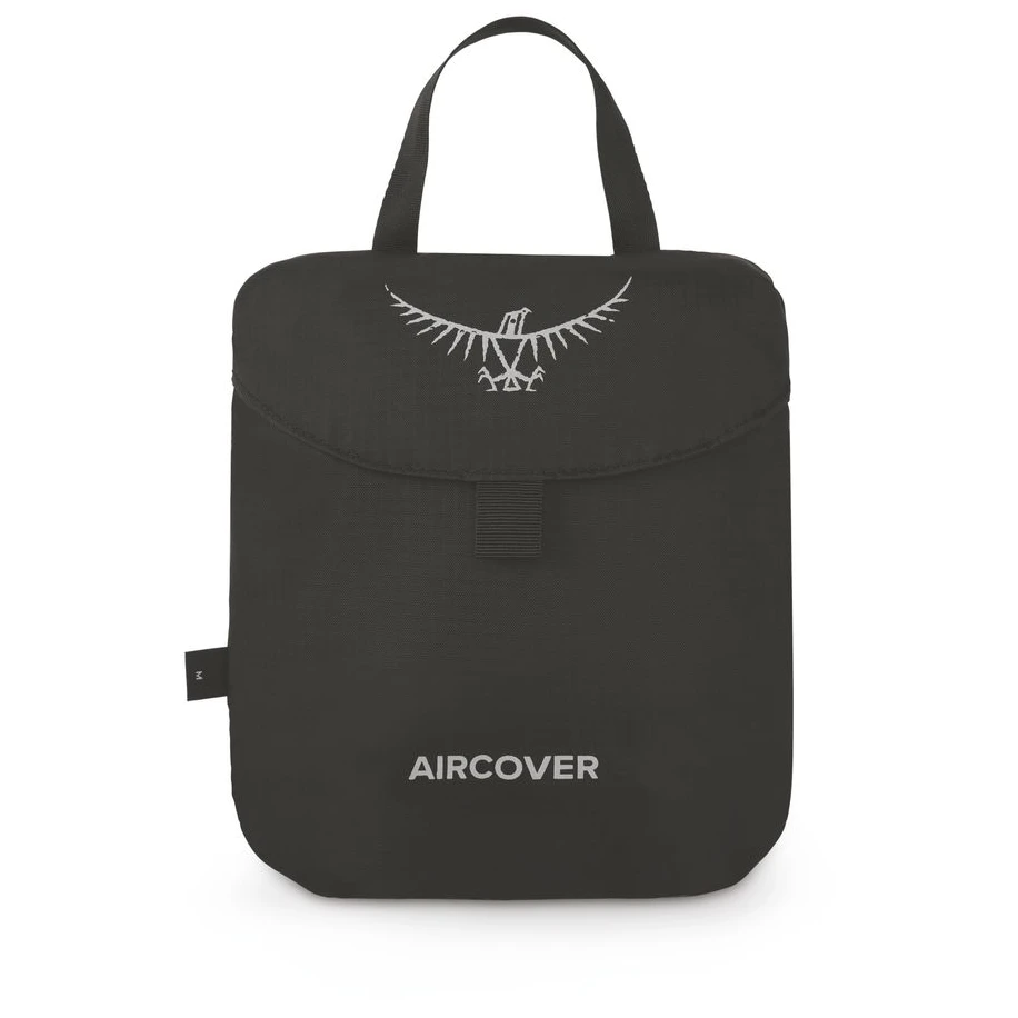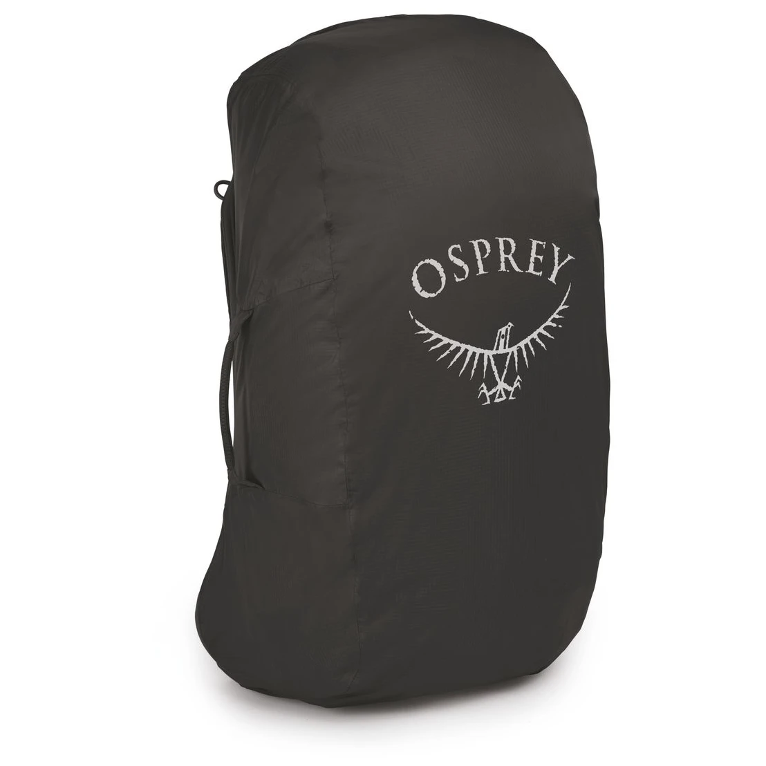 Der Aircover Medium Rucksack-Regenmantel Osprey aus strapazierfähigem Nylon für Rucksäcke mit einem Volumen bis zu 90 Litern bietet geschlossene Reißverschlüsse, einen Kordelzug und eine Verpackung im eigenen Etui.