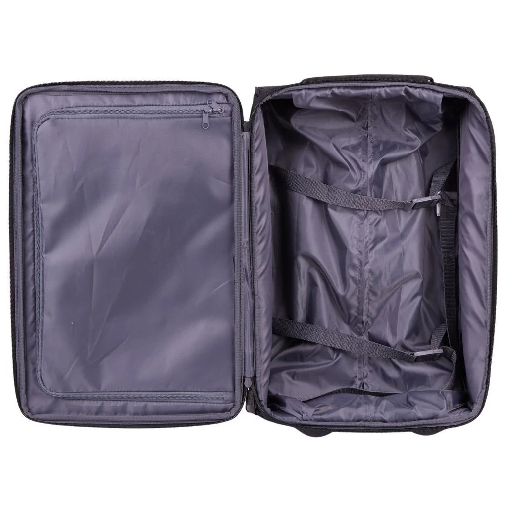 Es verfügt über ein geräumiges Hauptfach, eine leicht zugängliche Reißverschlusstasche vorne und eine Innentasche mit Reißverschluss, sodass Sie Ihre Sachen effizient organisieren können. Interne Kompressionsriemen sorgen dafür, dass der Inhalt während der Reise sicher gehalten wird. Der Koffer verfügt außerdem über Griffe an der Oberseite und an der Seite, seitliche Kompressionsschnallen und ein stilvolles Design mit dem CAT-Logo.