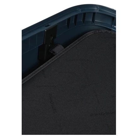 Stauraum bieten die untere Kammer mit Trennwänden und Taschen sowie das obere Fach mit Trennwänden, zusätzlich ist im oberen und unteren Fach jeweils eine Trennwand vorhanden. Zum einfachen Bewegen sind 4 leichtgängige Räder vorhanden und ein einziehbarer Griff sorgt für mehr Mobilität. Es verfügt über einen oberen und seitlichen Tragegriff und ein integriertes Ausweisschild.