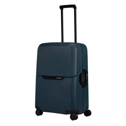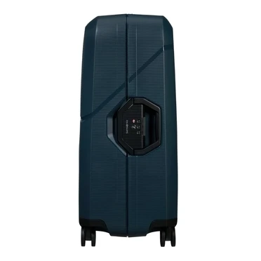 Der Reisekoffer Magnum Eco Spinner 69 von Samsonite aus der in Europa hergestellten Magnum Eco-Kollektion verfügt über eine Außenschale aus hochwertigem recyceltem Polypropylen, die für hohe Festigkeit und Haltbarkeit sorgt, während das Innenfutter aus 100 % recycelten PET-Flaschen besteht. Der Koffer verfügt über ein TSA-Schloss (Travel Sentry Approved), das Ihnen bei Reisen in die USA bei der Sicherheitskontrolle einfachen Zugriff auf den Inhalt Ihres aufgegebenen Gepäcks ermöglicht.