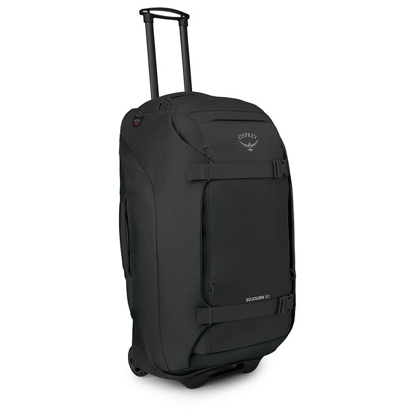 Der Sojourn 80 Rollkoffer von Osprey ist die perfekte Wahl für die anspruchsvollsten Abenteuer und Reisen und bietet nicht nur jede Menge Platz, sondern auch eine einfache Handhabung. Dafür sorgt vor allem das extra breite High Road-Fahrwerk, das die Ladung optimal stabilisiert und dank der extragroßen Räder auch anspruchsvolleres Gelände bequem meistert. Bei extrem anspruchsvollem Gelände greift man auf das innovative AirSpace-Rückensystem zurück, das die Tasche in einen komfortablen, großvolumigen Rucksack verwandelt. AirSpace ist höhenverstellbar und kann für den Transport in einer separaten Reißverschlusstasche verstaut/zusammengefaltet werden. Zum Rückensystem gehören außerdem bequeme und verstellbare Schultergurte mit Brustgurt und ein atmungsaktiver Hüftgurt mit Schnalle.