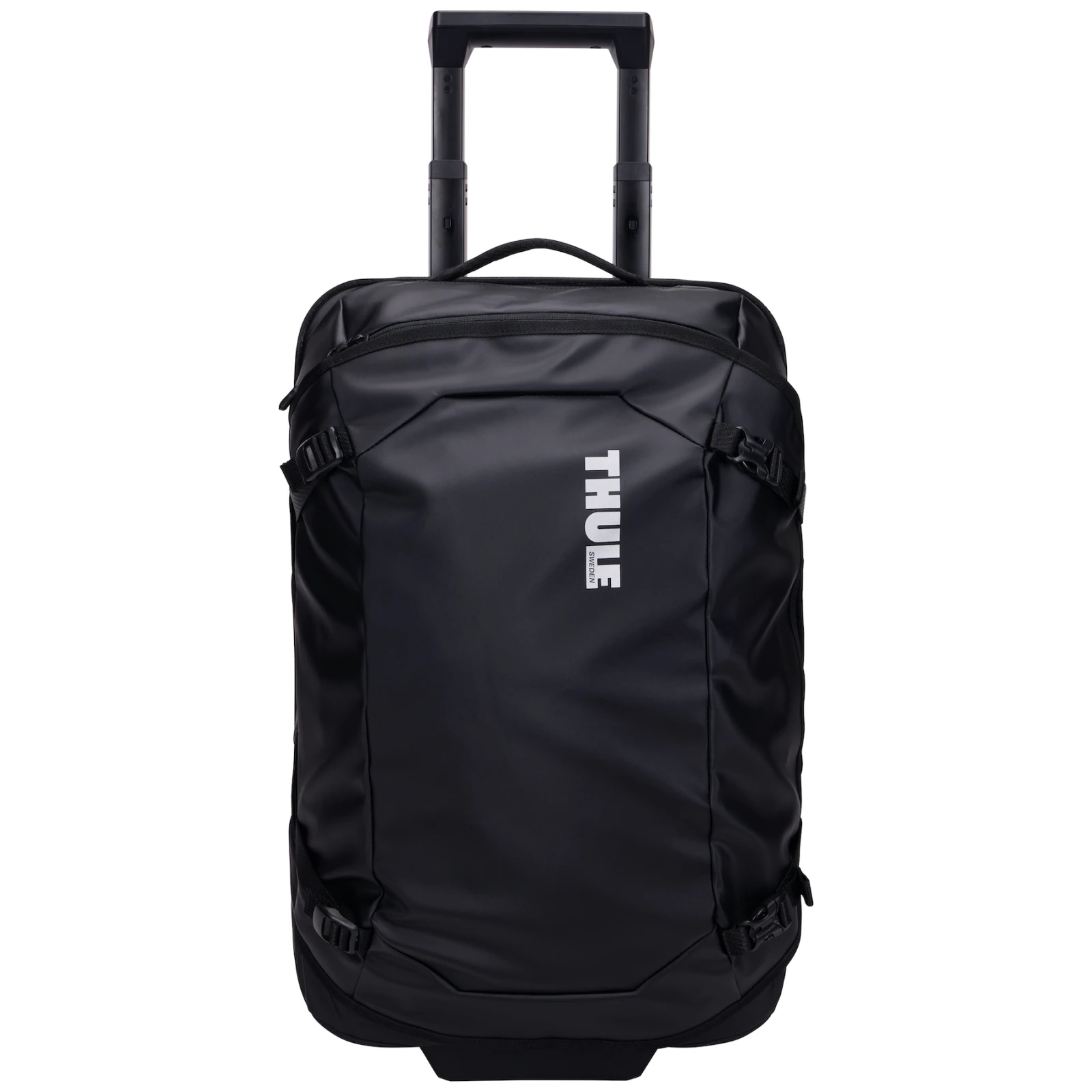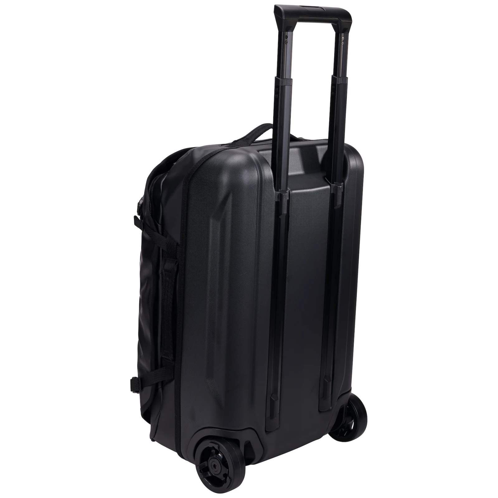 Eine bequeme Handhabung wird durch integrierte Rollengewährleistet, die durch eine äußerst langlebige Platte aus geformtem Polycarbonat ergänzt werden. Durch seine Robustheit sorgt es für eine hohe Laststabilität. Im Inneren des Panels verbirgt sich dann ein Teleskopgriff mit V-Kanal. Zur komfortablen Handhabung tragen zusätzlich die oben und seitlich angebrachten Tragegriffe bei. Zu den weiteren Features gehören externe Kompressionsriemen , die dabei helfen, alles an Ort und Stelle zu halten, und ein äußerst strapazierfähiges Material aus 100 % recyceltem Polyester, das widrigen Bedingungen nicht scheut.