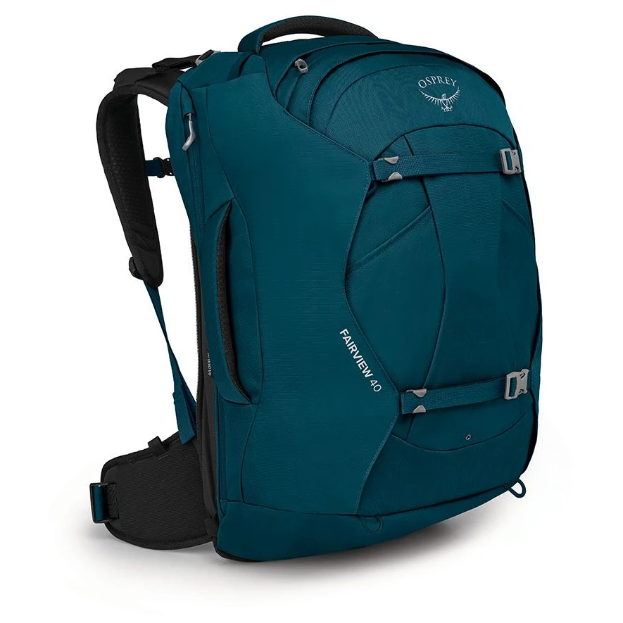 Die Damentasche Fairview 40 der Marke Osprey ist ein einzigartiges Gepäckstück, das die Vorteile eines Koffers, einer Reisetasche und eines Rucksacks in einem vereint. Einzigartigen Tragekomfort bietet das AirScape™-Rückenteil, das mit Schaumstoffnoppen ausgestattet und in der Höhe verstellbar (38-47 cm) ist und somit bequem ist und eine optimale Passform bietet. Komplettiert wird das Panel dann noch durch bequeme und atmungsaktive Schultergurte, welche durch einen Brustgurt mit Pfeife und einen gepolsterten Hüftgurt mit Schnalle ergänzt werden. Für eine optimale Gewichtsverteilung beim Tragen sorgt ein Rahmen aus 4mm-Draht LightWire und einer Atilon-Rahmenplatte. Beim Check-In lässt sich das komplette Panel inklusive der Schultergurte verstauen, so dass keine Beschädigungsgefahr besteht.