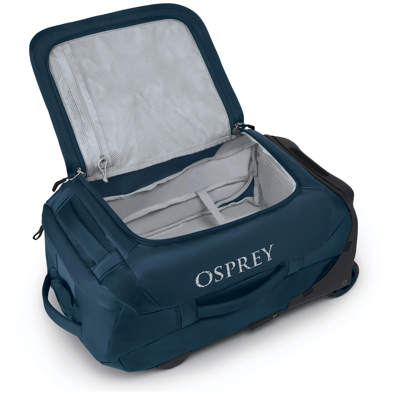 Die ReisetascheRolling Transporter 40 verfügt über alle Qualitäten der Rucksäcke der amerikanischen Marke Osprey. Es ist langlebig, robust und für den einfachen Transport mit Rädern ausgestattet, die auch anspruchsvolleres Gelände bewältigen.