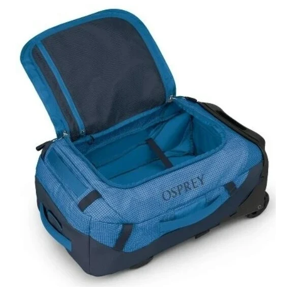 Die Reisetasche Rolling Transporter 40 der Marke Osprey vereint Sporttasche und Koffer mit Rollen und Tragegriff. Dadurch ist es ideal für Reisen und damit verbundene Transfers.