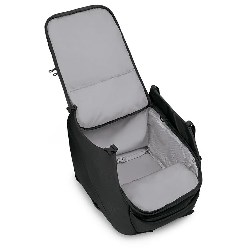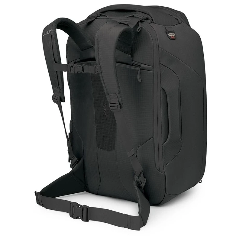 Die Reisetasche Sojourn Porter 65 der Marke Osprey ist die perfekte Wahl für Reiselustige, die einen zuverlässigen Begleiter zum Verstauen ihrer gesamten Ausrüstung suchen. Der Clou dabei ist das höhenverstellbare Rückensystem, das die Tasche in einen komfortablen Rucksack verwandelt. Es kann während des Transports oder beim Check-in am Flughafen in einer separaten Reißverschlusstasche verstaut/gefaltet werden. Das Rückensystem besteht aus atmungsaktiven und gepolsterten Schultergurten mit Brustgurt und einem Hüftgurt mit ErgoPull-Schnalle. Für eine bequeme Handhabung, zum Beispiel beim Einchecken oder beim Verladen ins Auto, sorgen mehrere gepolsterte Tragegriffe rund um die Tasche.
