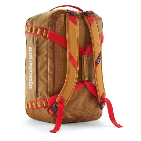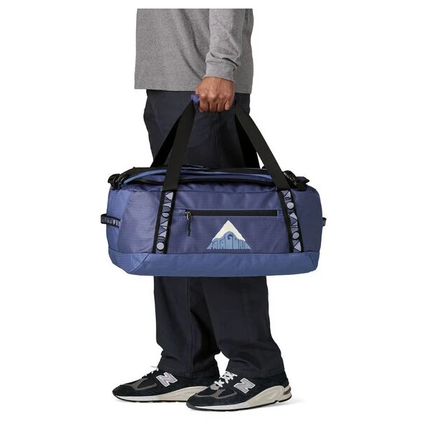 Reisetasche Die Black Hole Duffel 40L der Marke Patagonia ist eine ideale Wahl für verlängerte Wochenenden und kürzere Reisen mit dem Flugzeug oder der Bahn. Bei diesen Reisen können Sie die Tasche mit den abnehmbaren und gepolsterten Schultergurten schnell und einfach in einen bequemen Rucksack verwandeln. Darüber hinaus sind sie für maximalen Komfort ergonomisch geformt. Zum Tragen der Tasche stehen Ihnen zusätzlich 2 verstärkte Seitengriffe zur Verfügung.
