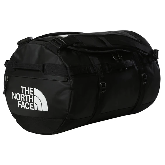 Die äußerst strapazierfähige Base Camp Duffel Reisetasche der amerikanischen Firma The North Face in der Größe S und einem Volumen von 50 Litern verfügt über einen optimierten Schnitt der Schultergurte für einen angenehmeren Transport. Die Griffe liegen gut in der Hand und schneiden nicht ein. Es besteht aus wasserdichtem und abriebfestem Material. Neu ist die Tasche mit einem seitlichen Reißverschluss, einem Fach für Handy, Portemonnaie oder andere Kleinigkeiten, die schnell zur Hand sein müssen.