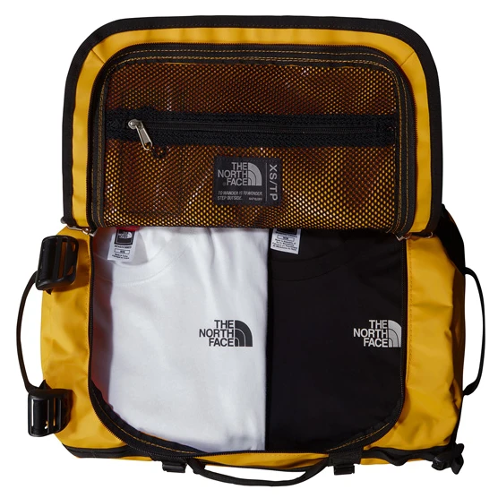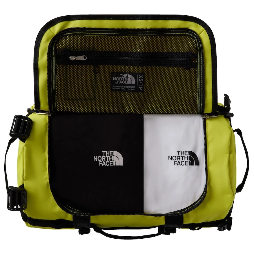 Die äußerst strapazierfähige Base Camp Duffel Reisetasche der amerikanischen Firma The North Face in der Größe XS und einem Volumen von 33 Litern verfügt über einen optimierten Schnitt der Schultergurte für einen angenehmeren Transport. Die Griffe liegen gut in der Hand und schneiden nicht ein. Es besteht aus wasserdichtem und abriebfestem Material. Neu ist die Tasche mit einem seitlichen Reißverschluss, einem Fach für Handy, Portemonnaie oder andere Kleinigkeiten, die schnell zur Hand sein müssen.