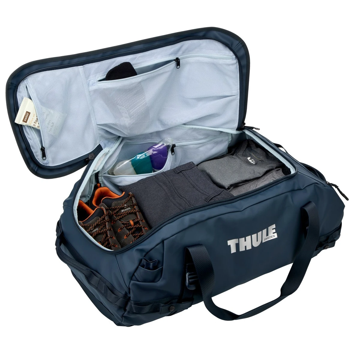 Die supercoole Sporttasche Chasm 70L der Marke Thule ist die perfekte Wahl für mehrtägige Abenteuer, bei denen sie ausreichend Stauraum für die nötige Ausrüstung bietet. Es besteht aus einem geräumigen Hauptfach mit extra breitem Eingang, zwei inneren Reißverschlusstaschen aus Netzmaterial und einer äußeren Reißverschlusstasche.