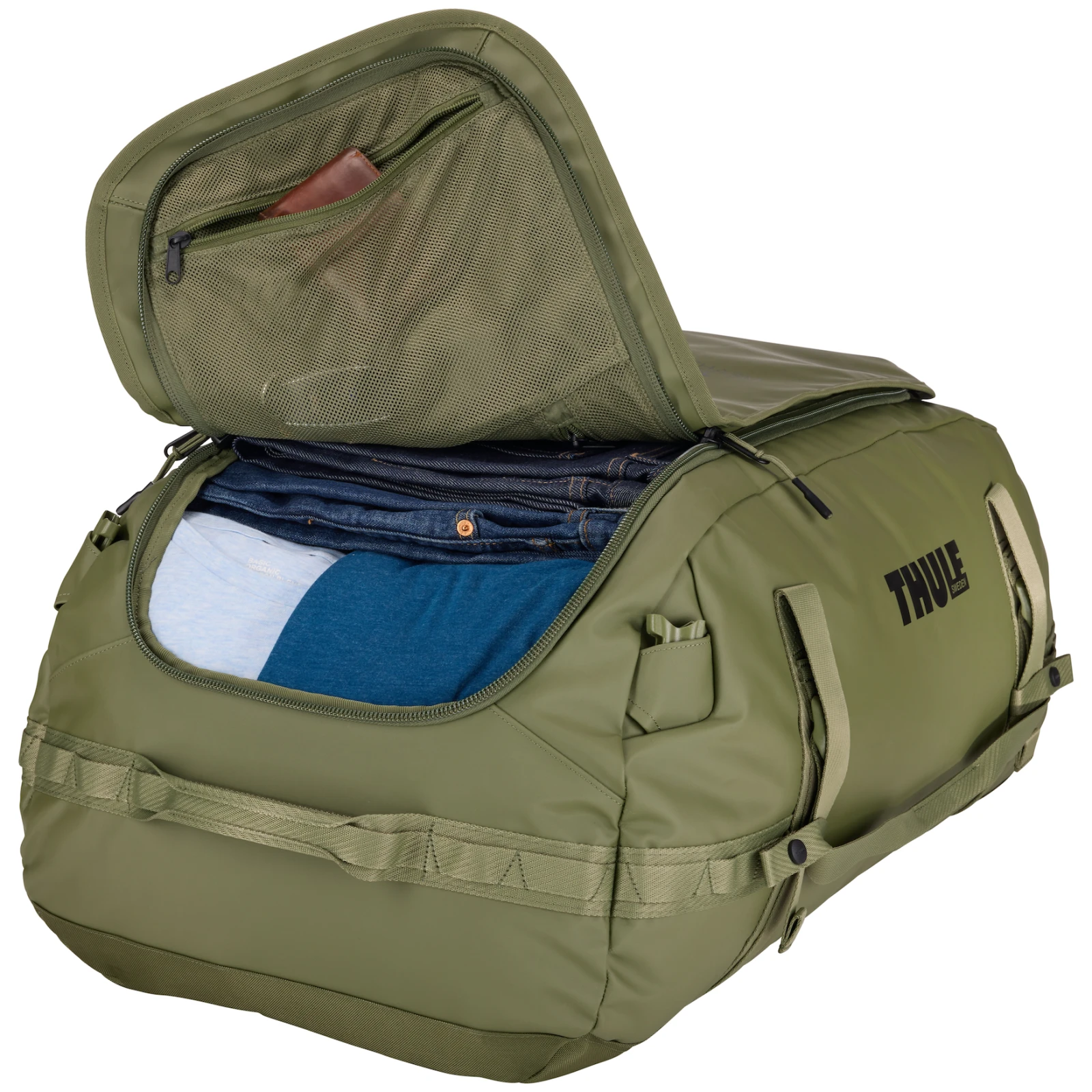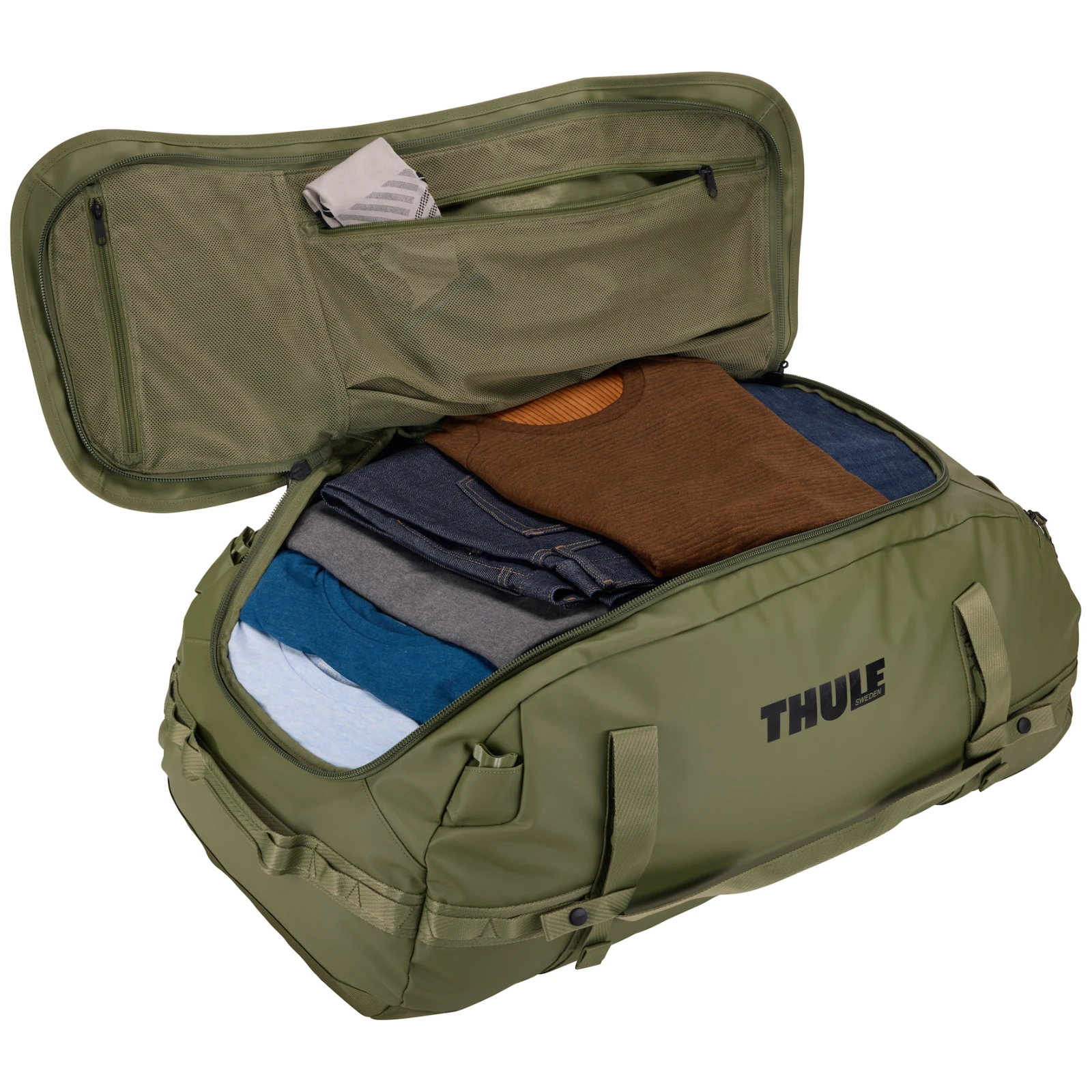 Die supercoole Chasm 90L Sporttasche der Marke Thule ist die perfekte Wahl für mehrtägige Abenteuer, bei denen sie ausreichend Stauraum für die notwendige Ausrüstung bietet. Es besteht aus einem geräumigen Hauptfach mit extra breitem Eingang, zwei inneren Reißverschlusstaschen aus Netzmaterial und einer äußeren Reißverschlusstasche.