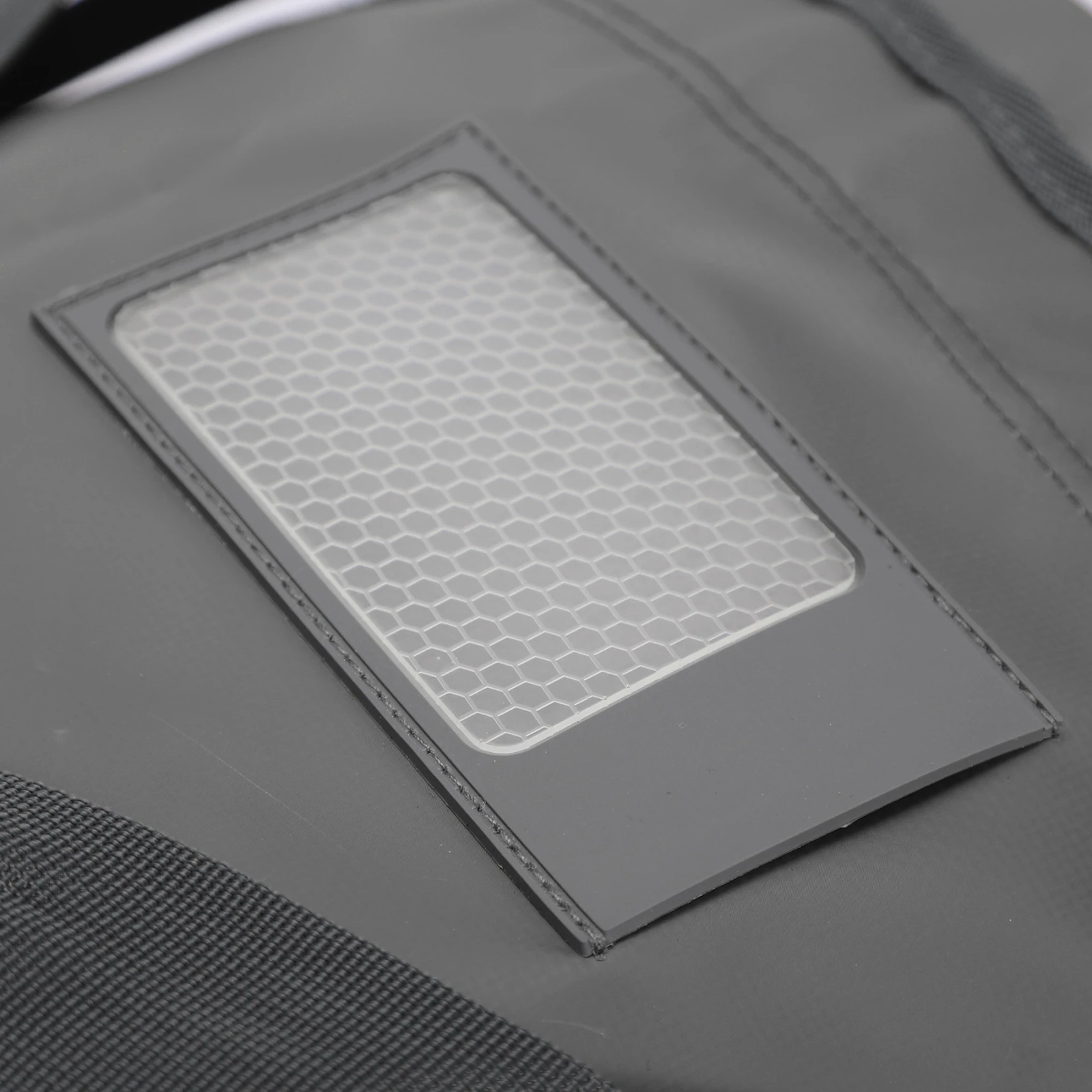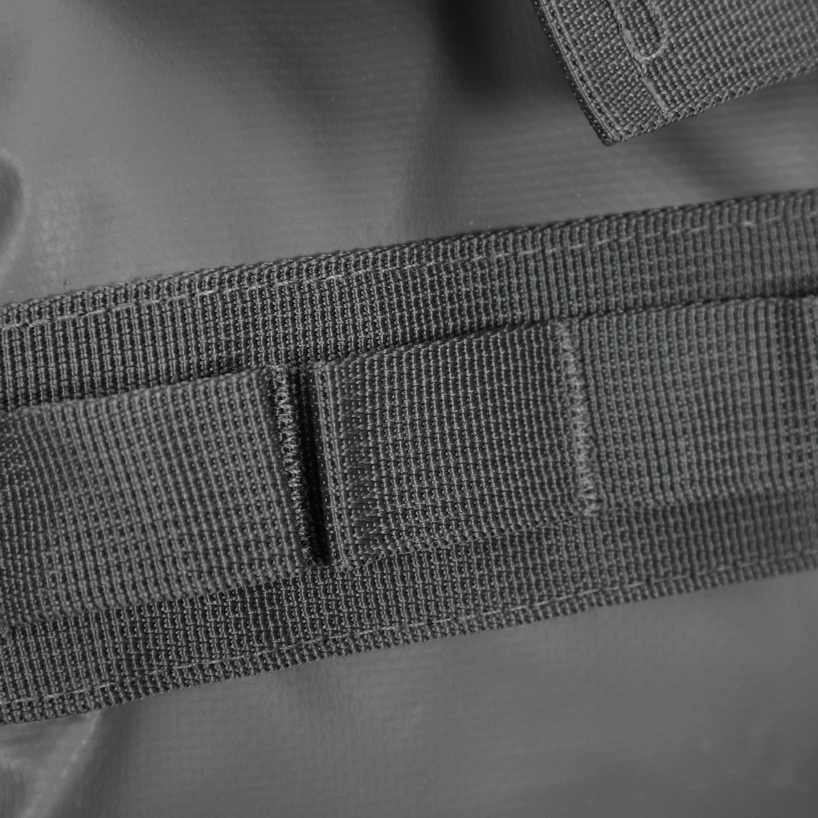 Die Tasche verfügt über einen Daisy-Chain-Gurt, an dem zusätzliches Material oder Ausrüstung befestigt werden kann, und eine wasserabweisende Tasche für ein Adressetikett. Zum Tragen können Sie außerdem unkompliziert die beiden seitlichen Tragegriffe nutzen.