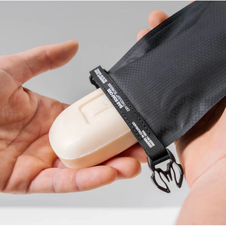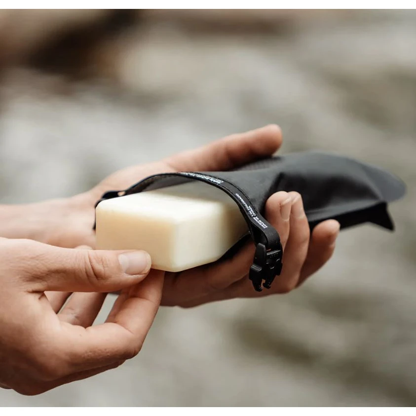 Das FlatPak Soap Bar Case von Matador ist eine leichte und auslaufsichere Möglichkeit, Seife auf Reisen mitzunehmen. Die Seifenhülle besteht aus Cordura®-Nylon mit patentierter Matador® Dry-Through™ -Schicht und einem Hypalon-Rollverschluss. Dank der Dry-Through™-Technologie kann die Seife durch die Hülle hindurch trocknen. Die Hülle verfügt über eine wasserdichte, verschweißte Konstruktion und einen YKK-Schnallenverschluss. Die knitterfreie Stoffkonstruktion passt sich der Größe des darin enthaltenen Seifenstücks an.