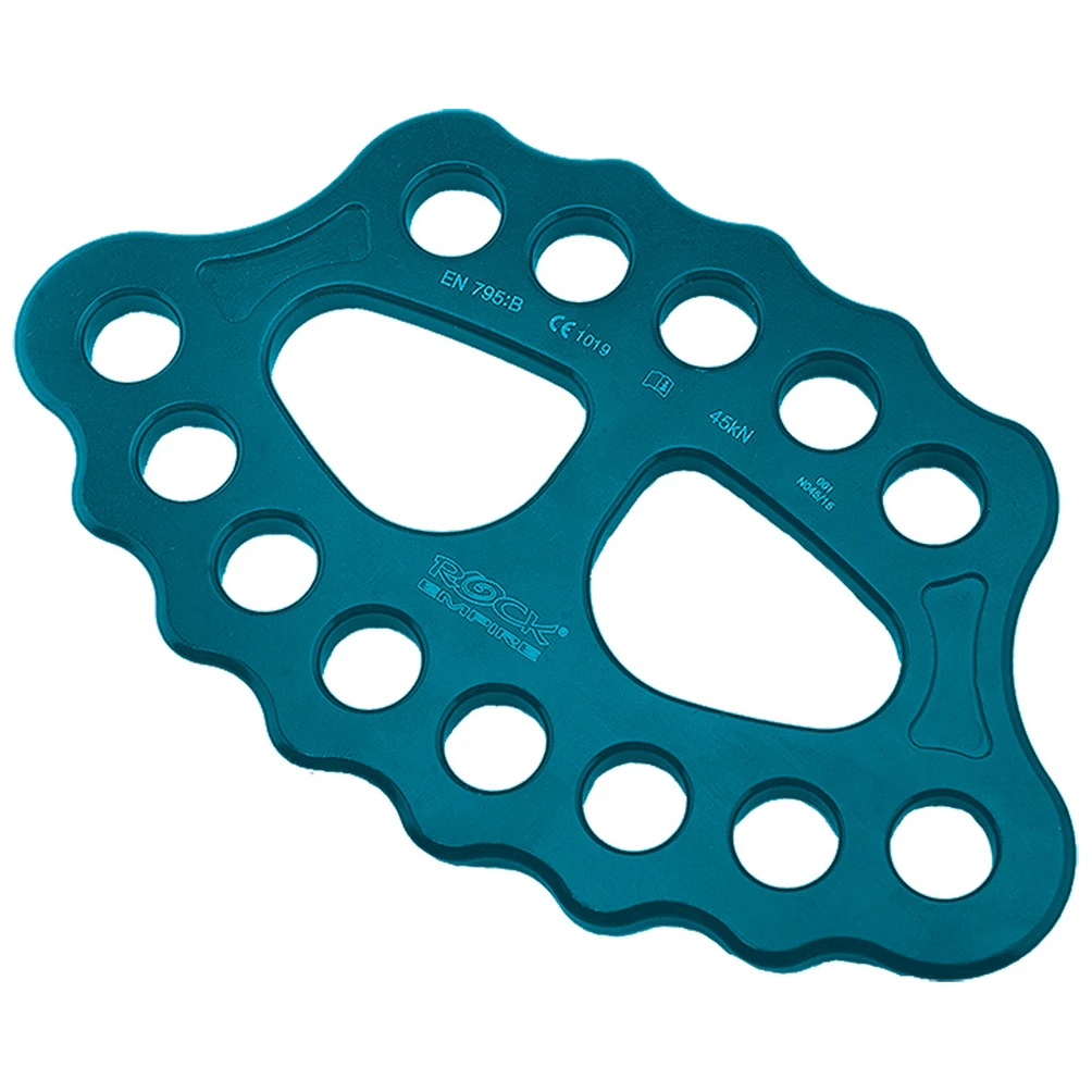 Ankerplatte 5/8 Rock Empire Die Ankerplatte dient der korrekten Anordnung von Karabinern unter Arbeitsbedingungen. Durch die Platte kann die auf den Ankerpunkt wirkende Kraft auf mehrere Punkte verteilt werden. Die Ösengröße erlaubt die Verwendung aller gängigen Karabiner (auch mit Schlosssicherung).