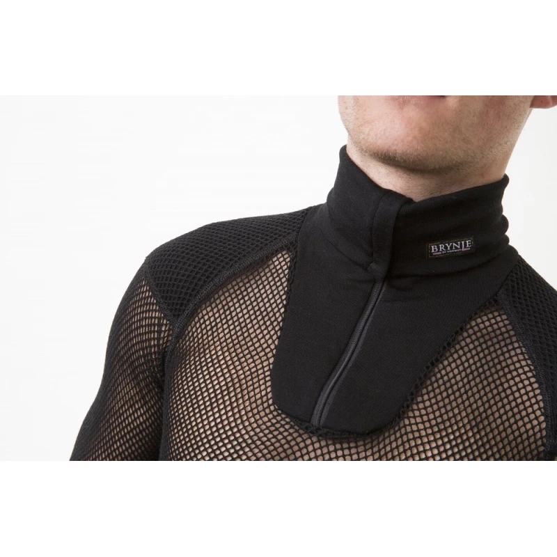 Das feinmaschige Funktions-T-Shirt Wool Thermo Zip-Polo mit Inlay der Marke Brynje ist die perfekte Basisschicht für Rad- oder Wanderbegeisterte. Bei diesen Aktivitäten wirst Du sicherlich die hohe Strapazierfähigkeit, den perfekten Feuchtigkeitstransport und die hervorragenden Isolationseigenschaften zu schätzen wissen. Diese Eigenschaften verdankt das T-Shirt der einzigartigen Materialkombination aus feinster Merino Wolle und feinem Mesh. Das T-Shirt hat lange Ärmel mit gepolsterten Schultern, um maximalen Komfort beim Tragen eines Rucksacks zu gewährleisten, und einen hohen Kragen mit Reißverschluss.
