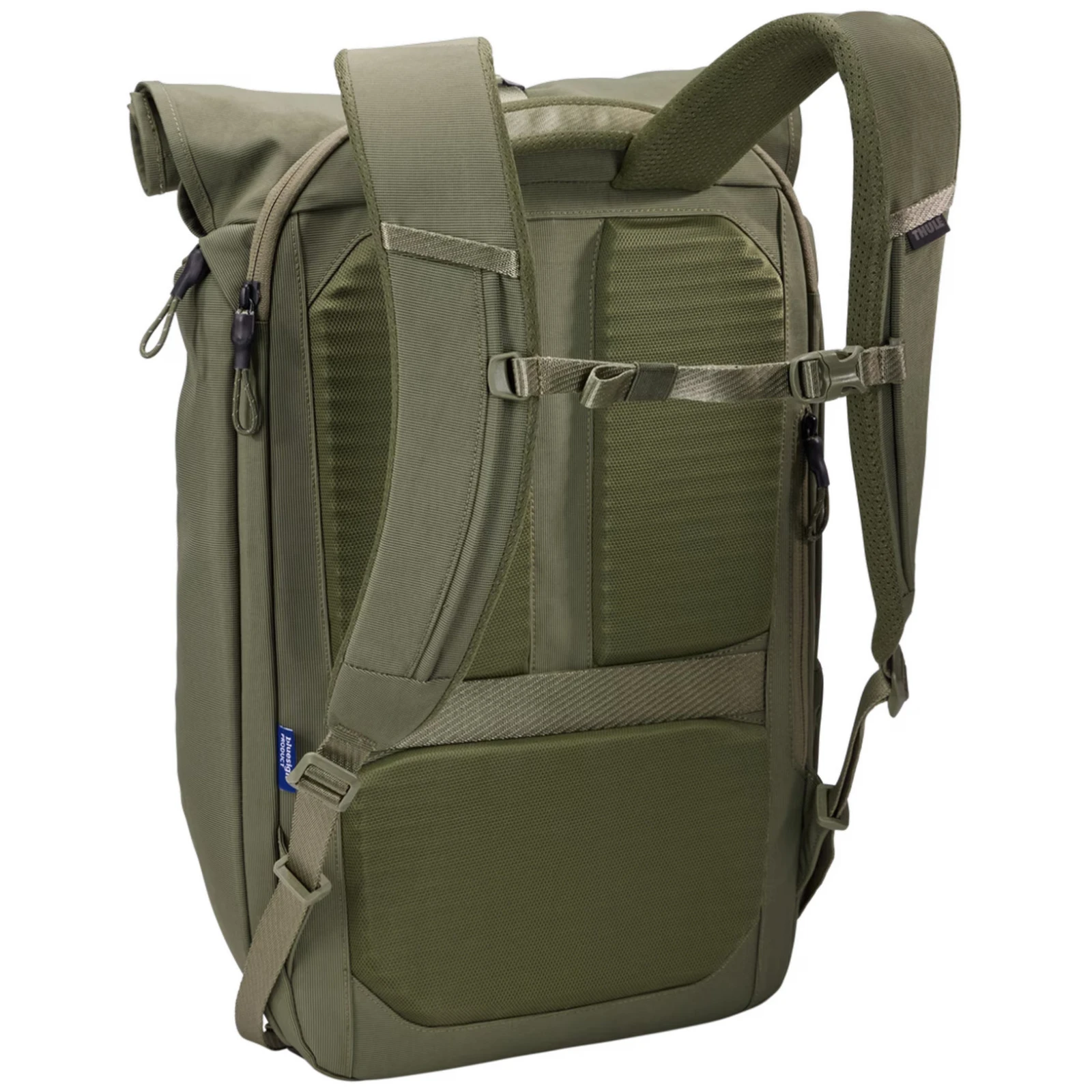 Mal mit dem Rad unterwegs, mal mit der Bahn - mit diesem Rucksack bist du dank vieler praktischer Features in beiden Fällen bestens durch die Stadt gewappnet. Wenn Sie unterwegs sind, können Sie über die oberen oder seitlichen Öffnungen problemlos auf Ihre Sachen im Hauptfach zugreifen oder eine Jacke oder ein Fahrradschloss in den erweiterbaren Shove-it-Fronttaschen verstauen. Der Rollverschluss lässt sich erweitern, bietet mehr Stauraum und schützt Ihre Sachen vor den Elementen. Ein Fahrradlichtband und reflektierende Elemente sorgen dafür, dass Sie nachts sichtbar sind.