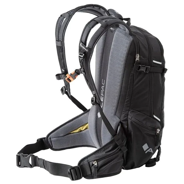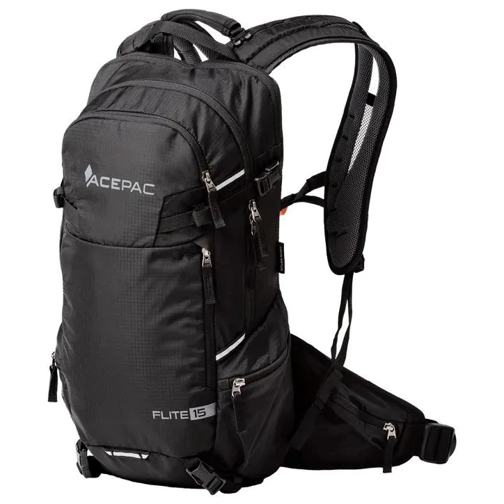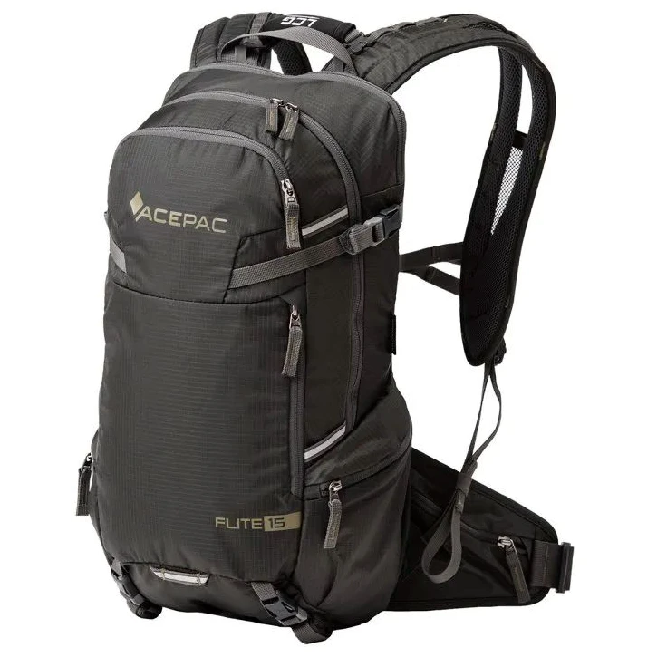 Der Flite 15 MKIII-Rucksack von Acepac verfügt über Taschen am Hüftgurt für kleine Gegenstände, die Sie beim Gehen oder Radfahren schnell greifen möchten. Das Hauptfach des Rucksacks verfügt über eine Tasche, die in erster Linie für einen Rückenprotektor vorgesehen ist, jedoch auch als zusätzlicher Stauraum genutzt werden kann. Der Rucksack verfügt über ein Handgepäck-Gurtsystem, das mit der Acepac Bar Bag oder Bar Drybag 8 L kompatibel ist. Diese Taschen können Sie problemlos am Rucksack befestigen.