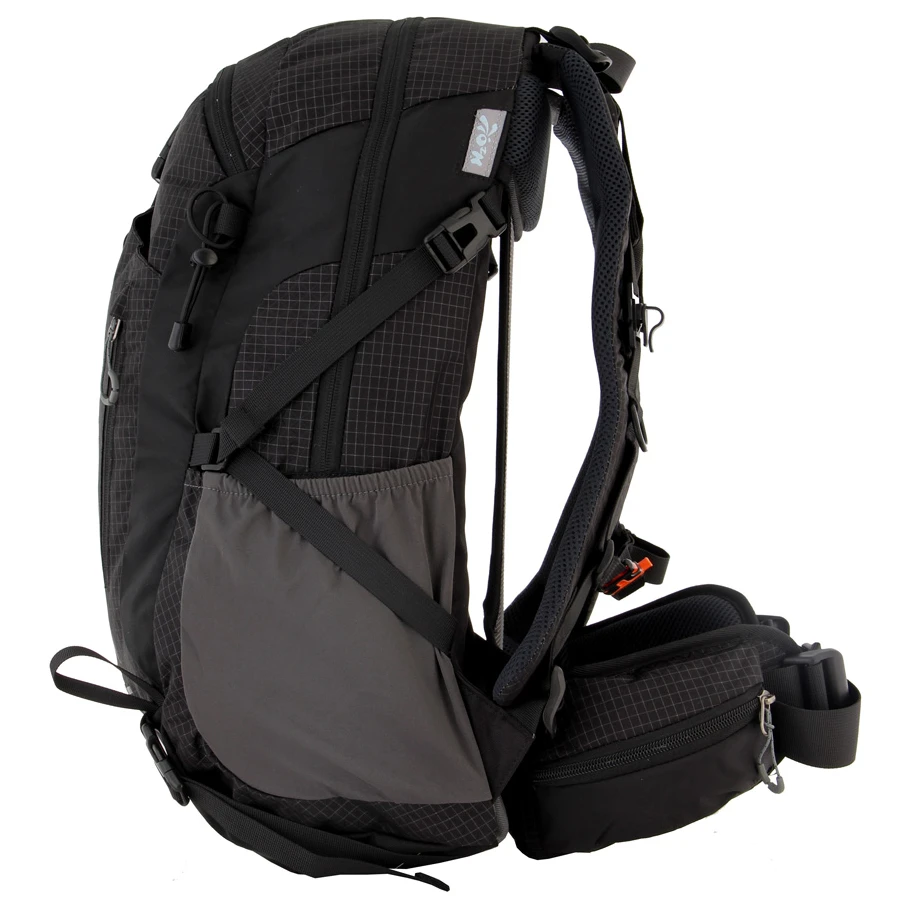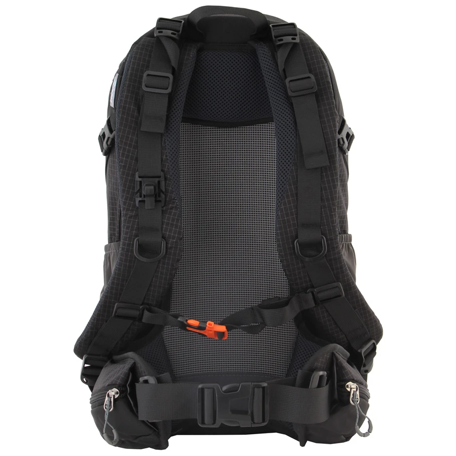 Wanderrucksack Axon Der Prodigy 35 l bietet Ihnen genügend Platz, um alles, was Sie für eine Wanderung in der Natur brauchen, ordentlich zu verstauen. Bei anspruchsvollen Ganztageswanderungen wird Sie das belüftete VCS-Rückensystem mit Mesh-Konstruktion, die die Schweißbildung minimiert, zu schätzen wissen. Damit der Rucksack perfekt auf Ihrem Rücken sitzt, ist er mit verstellbaren Gurten ausgestattet – Schultergurten, Brustgurten mit Pfeife und Hüftgurten mit Reißverschlusstaschen. Geräumige Seitentaschen bieten selbst für größere Wasserflaschen ausreichend Platz. Außerdem gibt es eine Vorbereitung für eine Trinkblase und eine praktische Schlaufe zum Befestigen eines Schlauchs am Schultergurt. Eine integrierte Regenhülle schützt den Rucksack bei widrigen Bedingungen.