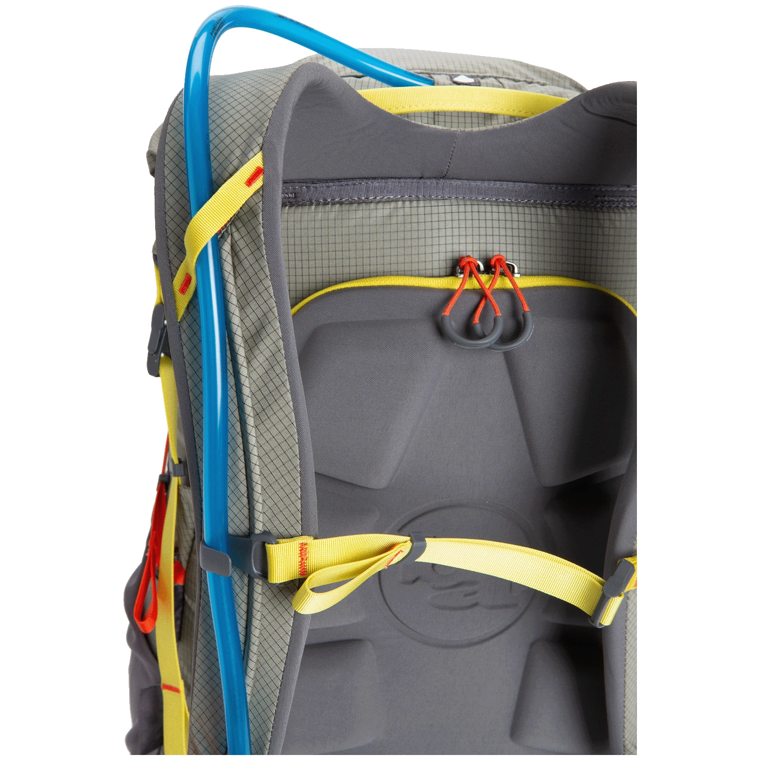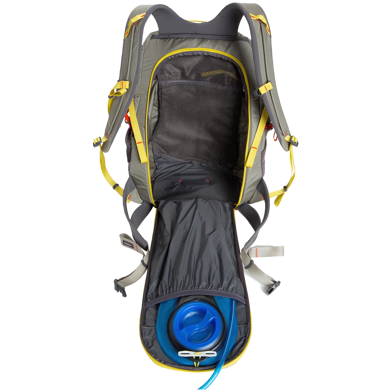 Der Rucksack verfügt über einen oberen Zugang zum Hauptfach des Rucksacks. Ein weiterer Zugang zum Rucksack befindet sich im Rückenbereich, wo der Reißverschluss die Rückseite des Rucksacks säumt, welche dann aufgeklappt werden kann. Durch den Seitengurt lässt sich das Volumen des gesamten Rucksacks reduzieren. Im Inneren des Rucksacks befinden sich eine Trinkblasentasche, ein diskreter Schlauchanschluss und ein Schlauchclip am Brustgurt. Das einzigartige Rückkompressionssystem der Seilrolle zieht das Gewicht nach oben und innen, sog. Hebezeug-Kompressionssystem.