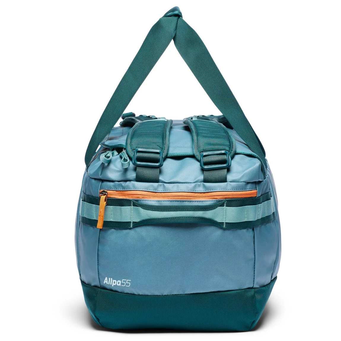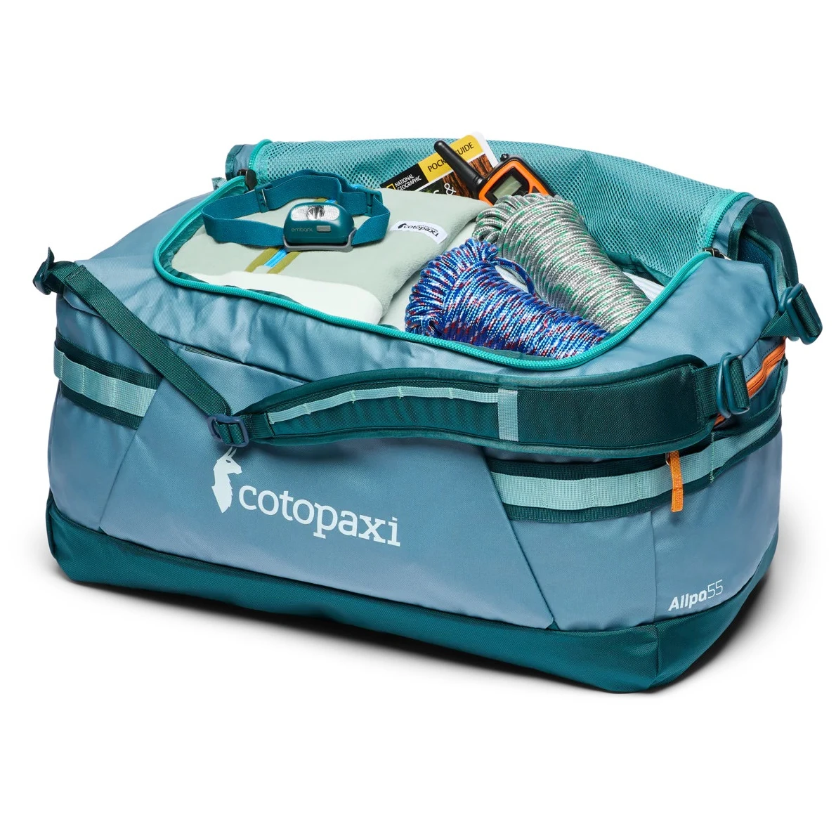 Die Allpa Getaway 55L Duffel Reisetasche von Cotopaxi bietet ausreichend Stauraum, ohne schwer oder sperrig zu sein. Dank des robusten Designs und der recycelten Materialien ist die Tasche ein zuverlässiger Begleiter und gleichzeitig umweltfreundlich. Die Tasche verfügt über gepolsterte Tragegurte, sodass sie wie ein Rucksack auf dem Rücken getragen werden kann.
