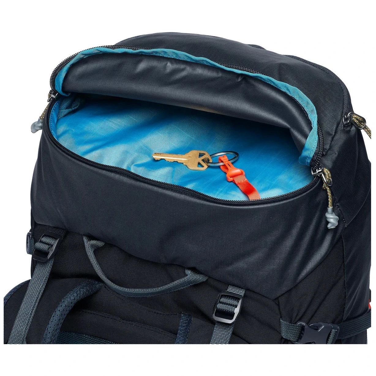 Das Mesh-Rückensystem schafft Platz zwischen Ihrem Rücken und dem Rucksack. Die Luft kann frei zirkulieren, was die Rückenbelüftung verbessert und die Schweißverdunstung beschleunigt. Der Nachteil ist eine leichte Verringerung des Innenvolumens und ein schlechterer Schwerpunkt.