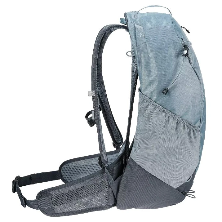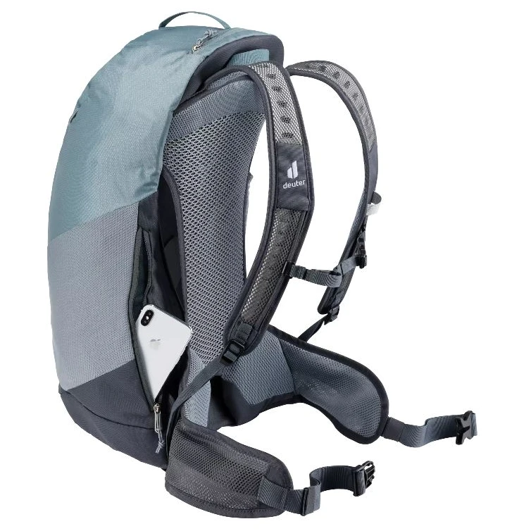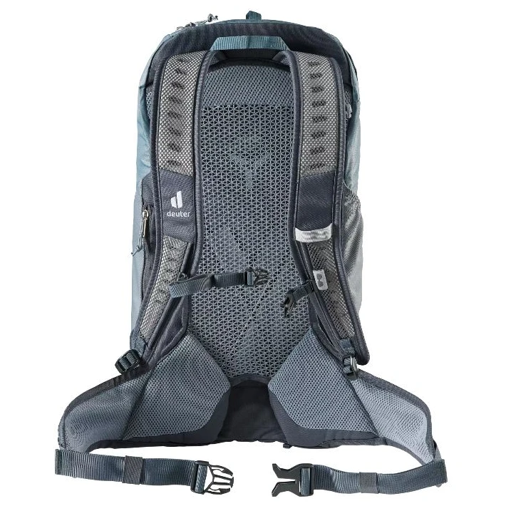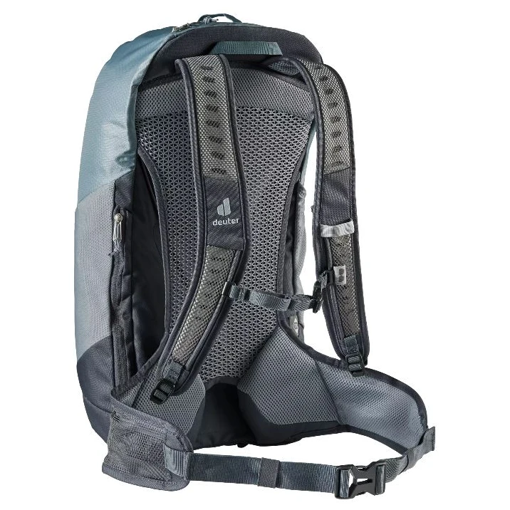 Der AC Lite 25 EL Wanderrucksack von Deuter ist sehr leicht, atmungsaktiv und komfortabel. Das Aircomfort-Rückensystem mit Mesh sorgt für maximale Luftzirkulation und verteilt dank Metallrahmen die Last optimal. Der Rucksack besteht aus einer Kombination aus recyceltem Polyamid und leichtem gewebtem Polyestergarn, das reißfestist. Das verwendete Material ist umweltfreundlich und bluesign© zertifiziert. Ein verstellbarer Hüftgurt und Brustgurt halten den Rucksack zusammen mit gepolsterten Schultergurten an Ort und Stelle.
