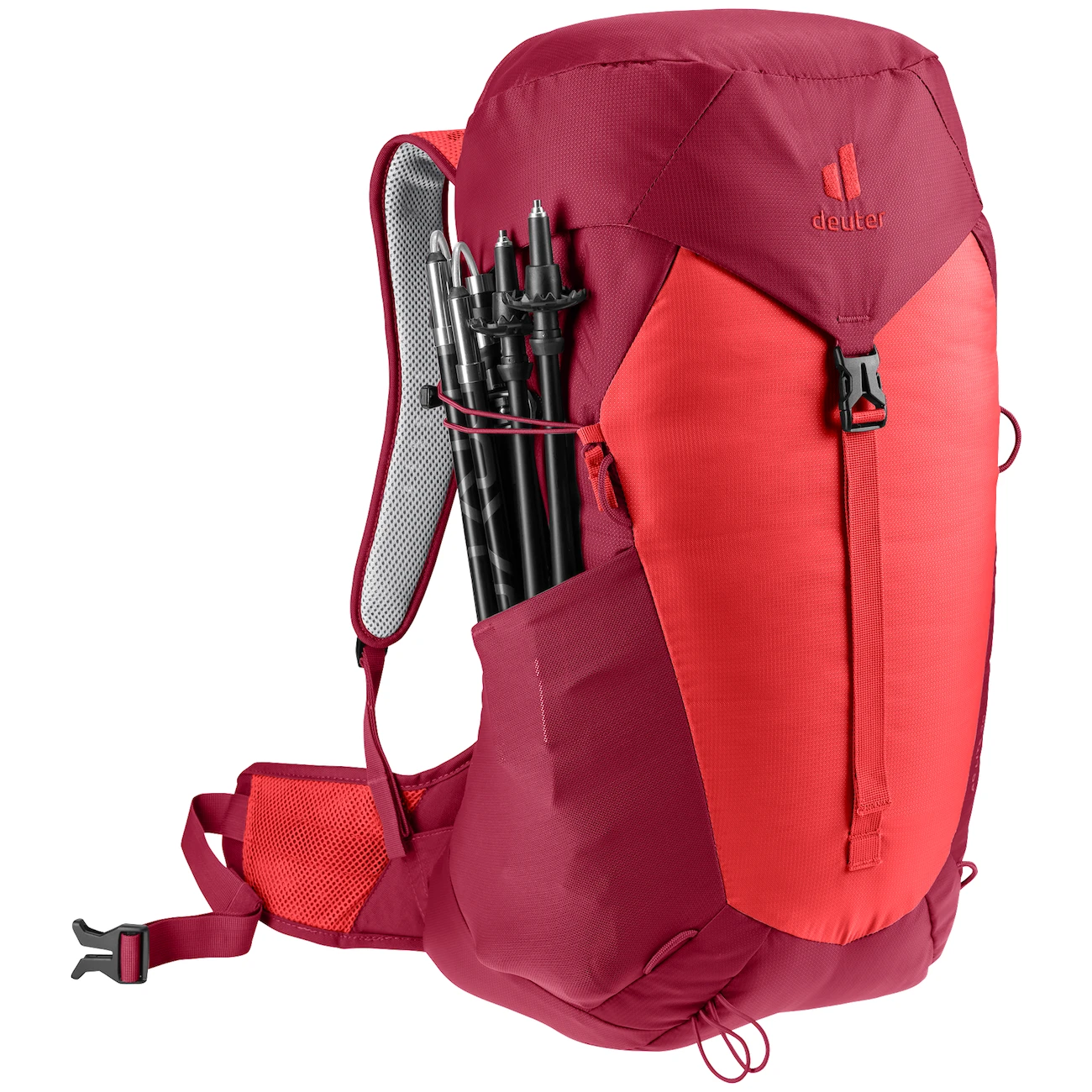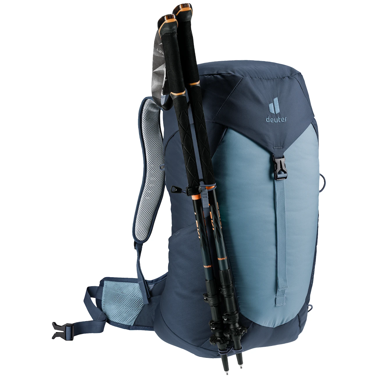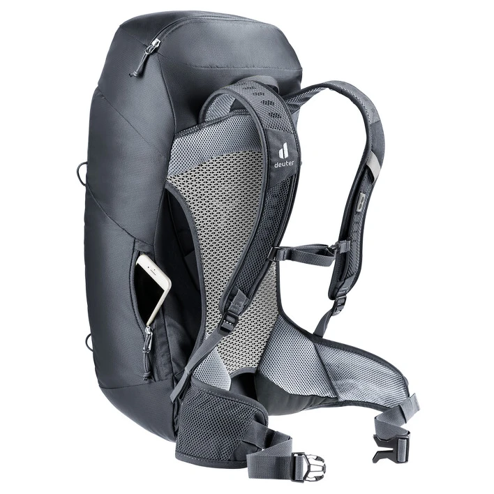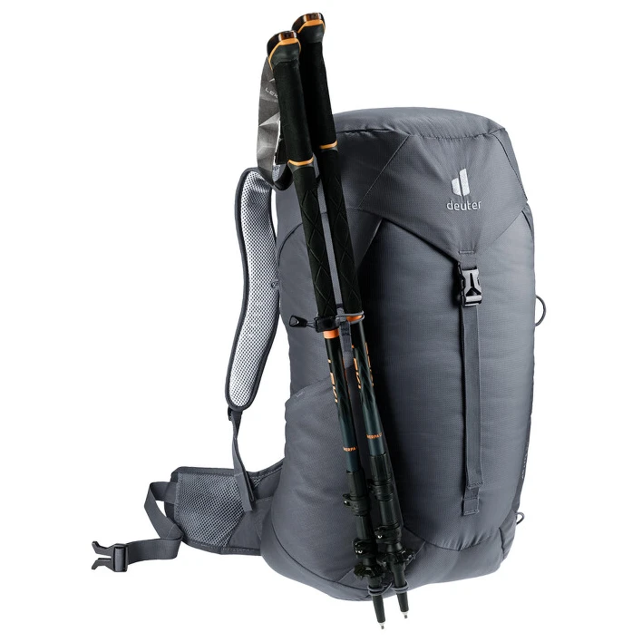 In der elastischen und leicht zugänglichen Mesh-Seitentasche lassen sich Smartphone oder Snacks bequem verstauen. Der Rucksack ist außerdem mit Trekkingstockschlaufen und reflektierenden Elementen ausgestattet und eine Helmhalterung lässt sich über Mesh-Schlaufen befestigen.