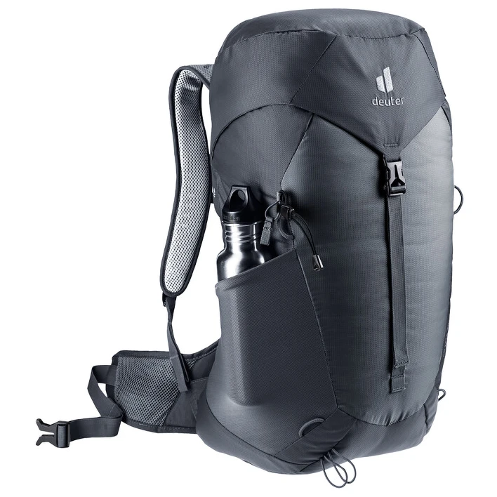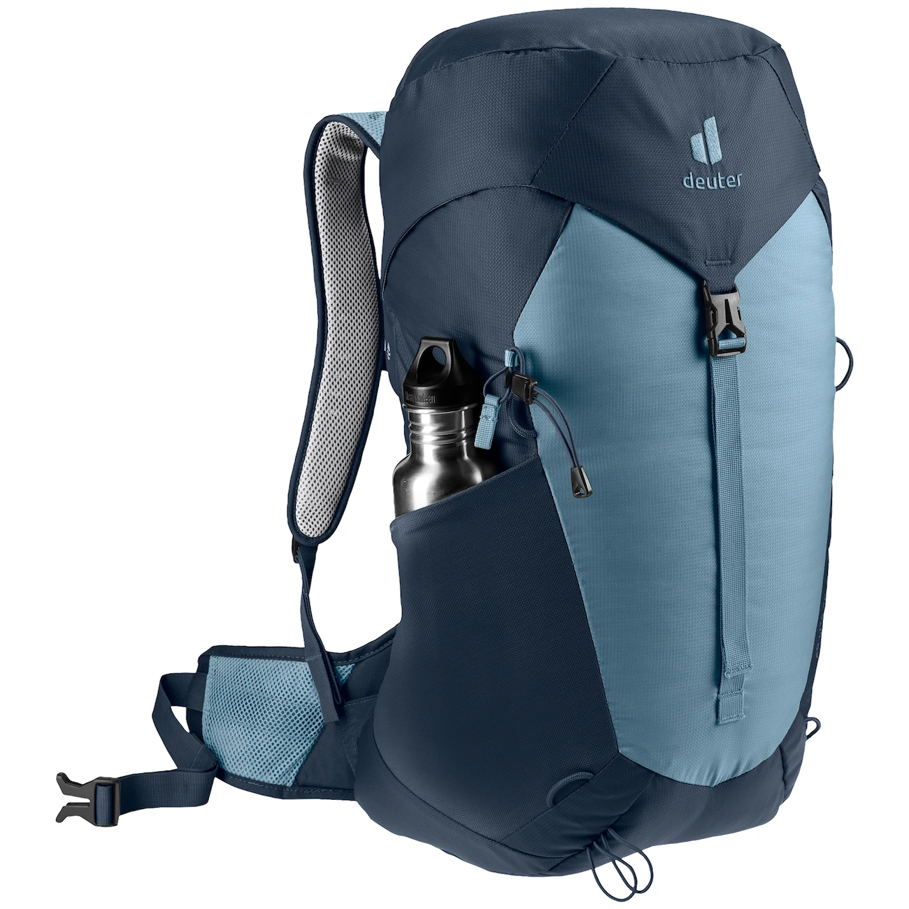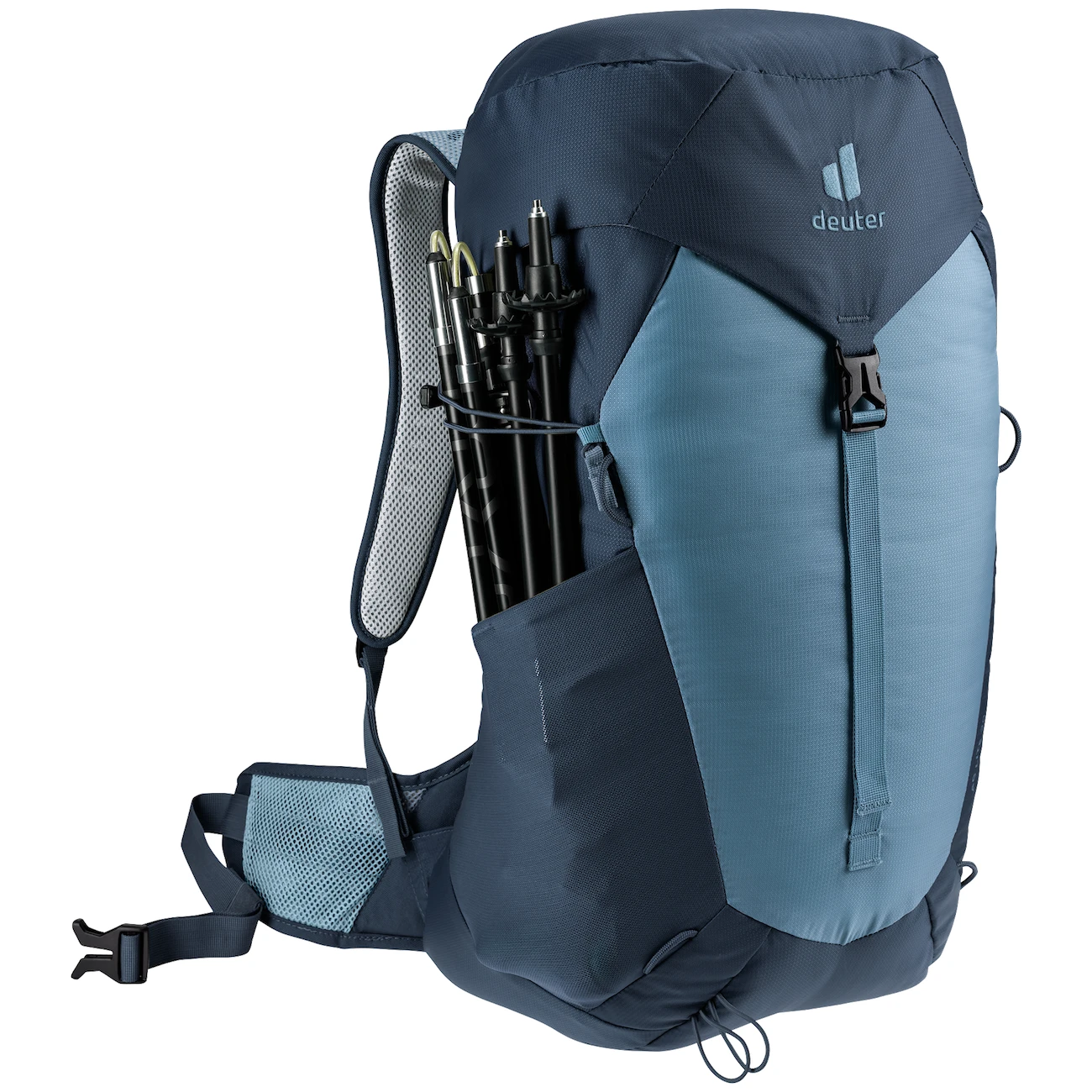 In der elastischen und leicht zugänglichen Mesh-Seitentasche lassen sich Smartphone oder Snacks bequem verstauen. Der Rucksack ist außerdem mit Trekkingstockschlaufen und reflektierenden Elementen ausgestattet und eine Helmhalterung lässt sich über Mesh-Schlaufen befestigen.