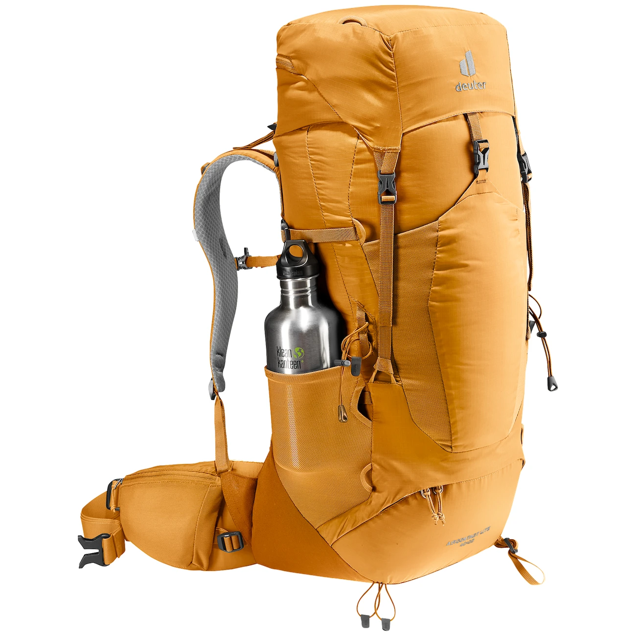 In der großen Innentasche finden alle Kleidungsstücke Platz, die Sie für eine lange Reise brauchen, und für den Fall, dass Sie nicht alles unterbringen können, gibt es eine zusätzliche 10-Liter-Erweiterung. Zu den Klassikern gehören Seitentaschen für Flaschen und Schlaufen zur Befestigung von Trekkingstöcken.