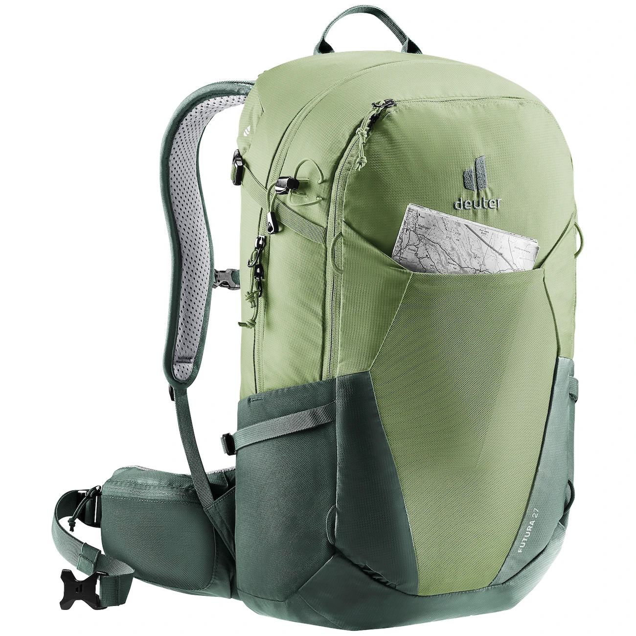Der leichte technische Rucksack Futura 27 der Marke Deuter ist ideal für sportliche Wanderungen im Alltag. Der Rucksack verfügt über eine Metallverstärkung im Rückenbereich, die für eine gute Gewichtsverteilung sorgt und dank schmalerer, gepolsterter Schultergurte für Leichtigkeit und Tragekomfort unterwegs sorgt. Der Rucksack ist mit dem neuen Aircomfort-Rückensystemausgestattet, das äußerst komfortabel ist und durch das Mesh für maximale Luftzirkulation sorgt, was zu 25 % weniger Schweiß und gesteigerter Leistung führt.