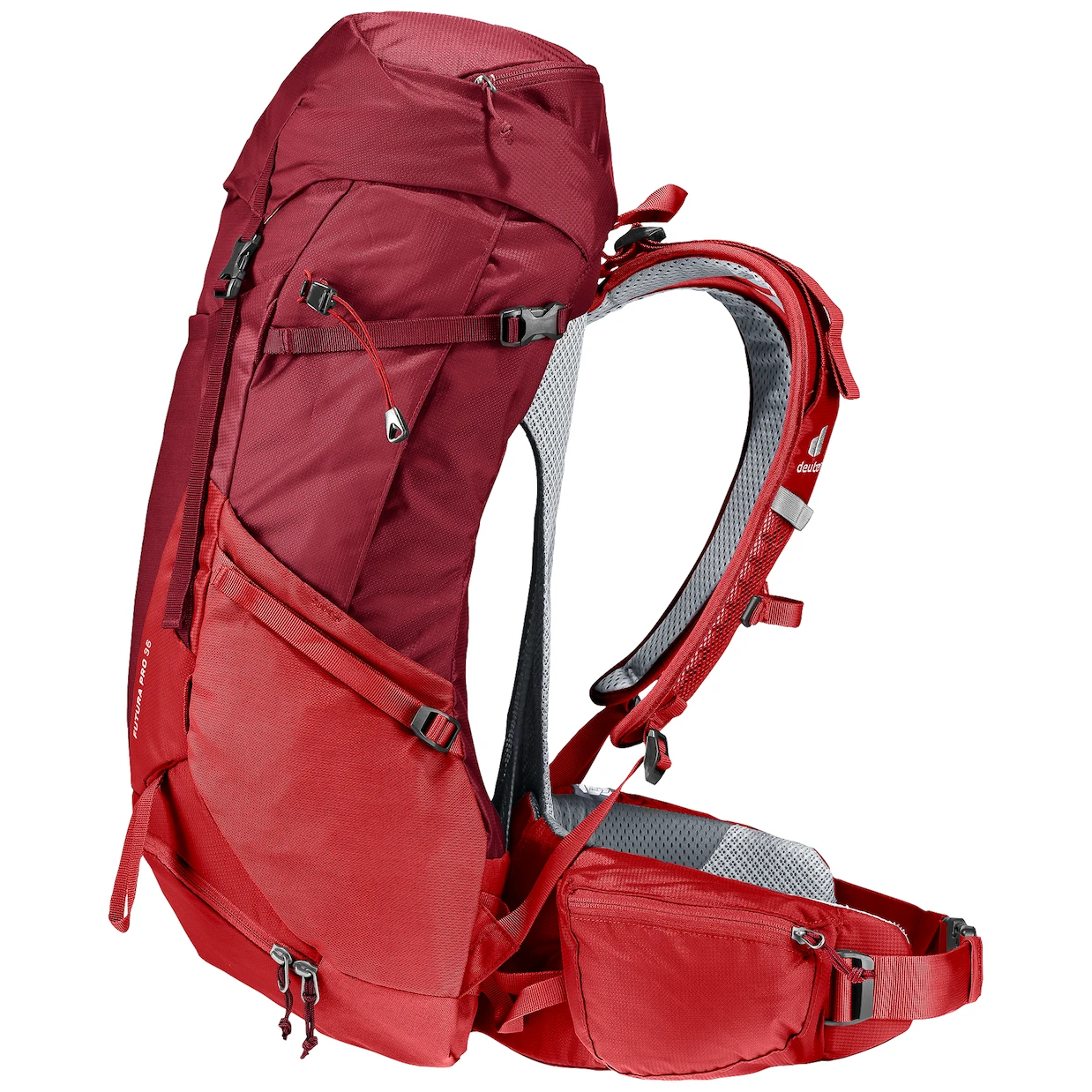 Das Mesh-Rückensystem schafft Platz zwischen Ihrem Rücken und dem Rucksack. Die Luft kann frei zirkulieren, was die Rückenbelüftung verbessert und die Schweißverdunstung beschleunigt. Der Nachteil ist eine leichte Verringerung des Innenvolumens und ein schlechterer Schwerpunkt.